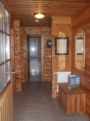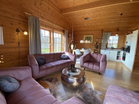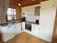 Auf knapp 80 m² finden Sie alles vor, um Ihren Urlaub in vollen Zügen ohne Kompromisse zu genießen. Treten Sie ein! Nachdem Sie Ihr Auto am Ende einer kleinen Sackgasse direkt neben dem Haus unter dem Carport geparkt haben gelangen Sie über die regensicher überdachte Veranda in unser schönes Ferienhaus. Da es aus massiven Blockbohlen gefertigt ist, erwartet Sie ein unvergleichliches Wohnklima und ist hervorragend für Allergiker geeignet, zumal es auch noch ein Nichtraucherhaus ist. Alles befindet sich auf einer Ebene, keine steilen oder gefährlichen Treppen, weshalb dieses Ferienhaus gerade für Familien mit Kindern, Urlauber mit Hund und Senioren perfekt geeignet ist. Durch die breite und geflieste Diele gelangen Sie in den großen hellen Wohnbereich mit hohen Decken. Die offene Wohnküche lässt keine Wünsche offen. Ob Herd mit Backofen, Dunstabzugshaube, Kühlschrank mit Gefrierfach, Mikrowelle, Geschirrspüler, Wasserkocher, Toaster, Töpfe und Pfannen, ausreichend Geschirr, Besteck und Gläser, auch für Kleinkinder, es ist alles vorhanden!