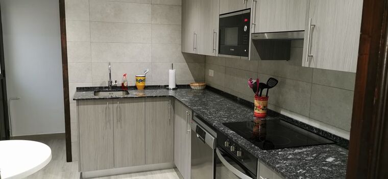 4-Platten Herd, Cerankochfeld, Dunstabzugshaube, Kühlschrank mit Gefrierfach, Nespresso-Automat, Mixer, Korkenzieher / Flaschenöffner, Geschirrhandtücher, Mülltüten