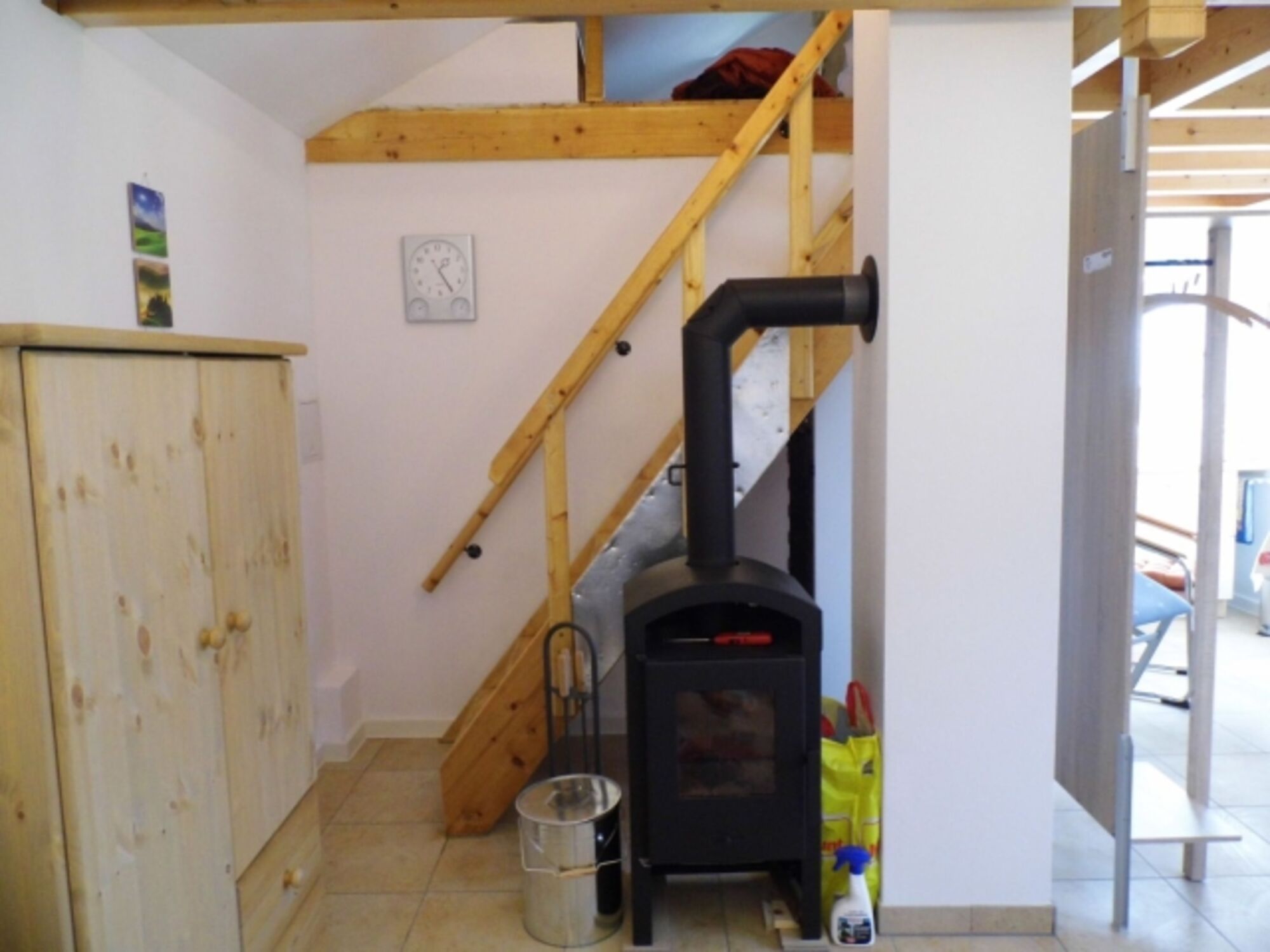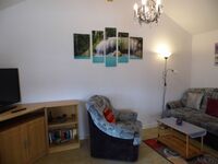 TV, TV-Sat, TV-Flachbildschirm, HDTV Flachbildschirm, CD-Player, Bücher, Kaminofen, 2er-Sofa, Sessel