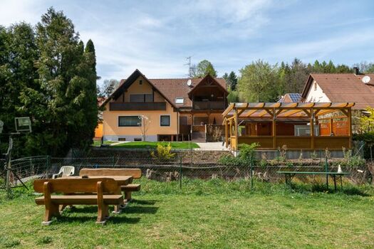 Wohnhaus in Ortsrandlage, anschließend Wiesen, die bis zum Wald reichen, Garten mit Blockhütte, Sitz und Grillplatz, Liege und Spielwiese, Solarium, Fitnessraum. Wandern, Spielen, Angeln, Radfahren, Erholen - für jeden ist etwas dabei. Speziell für Angler bieten wir Angelkarten vom Altmühl-, Brombach-, Igelsbach, Rothsee, Eichenberger Weiher, Klaus Tröster- und Brummer Weiher, der Altmühl, dem Altmühlzuleiter. Außerdem bieten wir Hälterungsbecken, Schlachtraum und Gefriermöglichkeit sowie Köderfische. Damit das Angeln noch mehr Spaß macht liegt am Brombachsee unser speziell für Angler ausgerüstetes Angelboot am Wasserliegeplatz. An alle Hundefreunde: Ab der Saison steht unseren Gästen eine eingezäunte spezielle Hundewiese mit verschiedenen Hundesportgeräten (Agiltygeräten nach FCI-Norm) direkt an das Haus anschließend mit direktem Zugang zum Wald zur Verfügung - Idealer gehts nimmer!