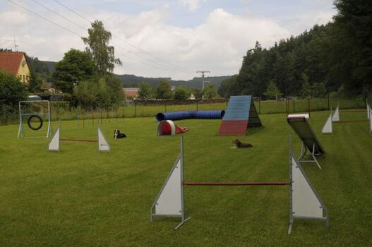 Ab der Saison steht unseren Gästen eine eingezäunte Hundewiese - ausgestattet mit diversen Geräten (A-Wand, Laufsteg, Reifen, Hürden etc. etc. ) - zur Verfügung , welche direkt anschliessend vom Garten aus erreichbar ist, mit anschliessendem direkten Zugang zum Wald.