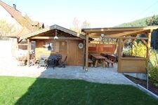 Liegewiese, Gartenmöbel, Holzgrill, Überdachte Terrasse (mobil)