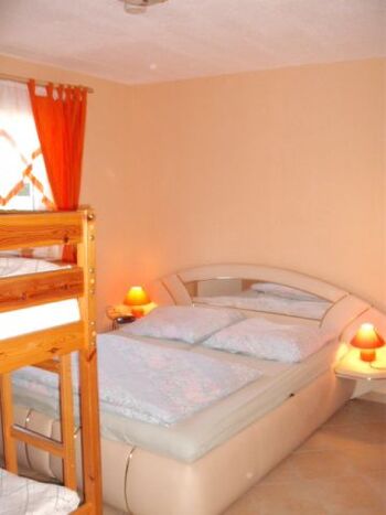 Im Schlafraum entspannen sie in einem 180 cm breiten Doppelbett, oder einem Etagenbett.