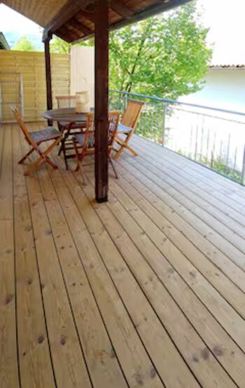 Holz, Natürlichkeit, Gemütlich, Nachhaltig, genauso ist die Ferienwohnung eingerichtet. Schon beim Betreten der Wohnung riecht es nach Holz.