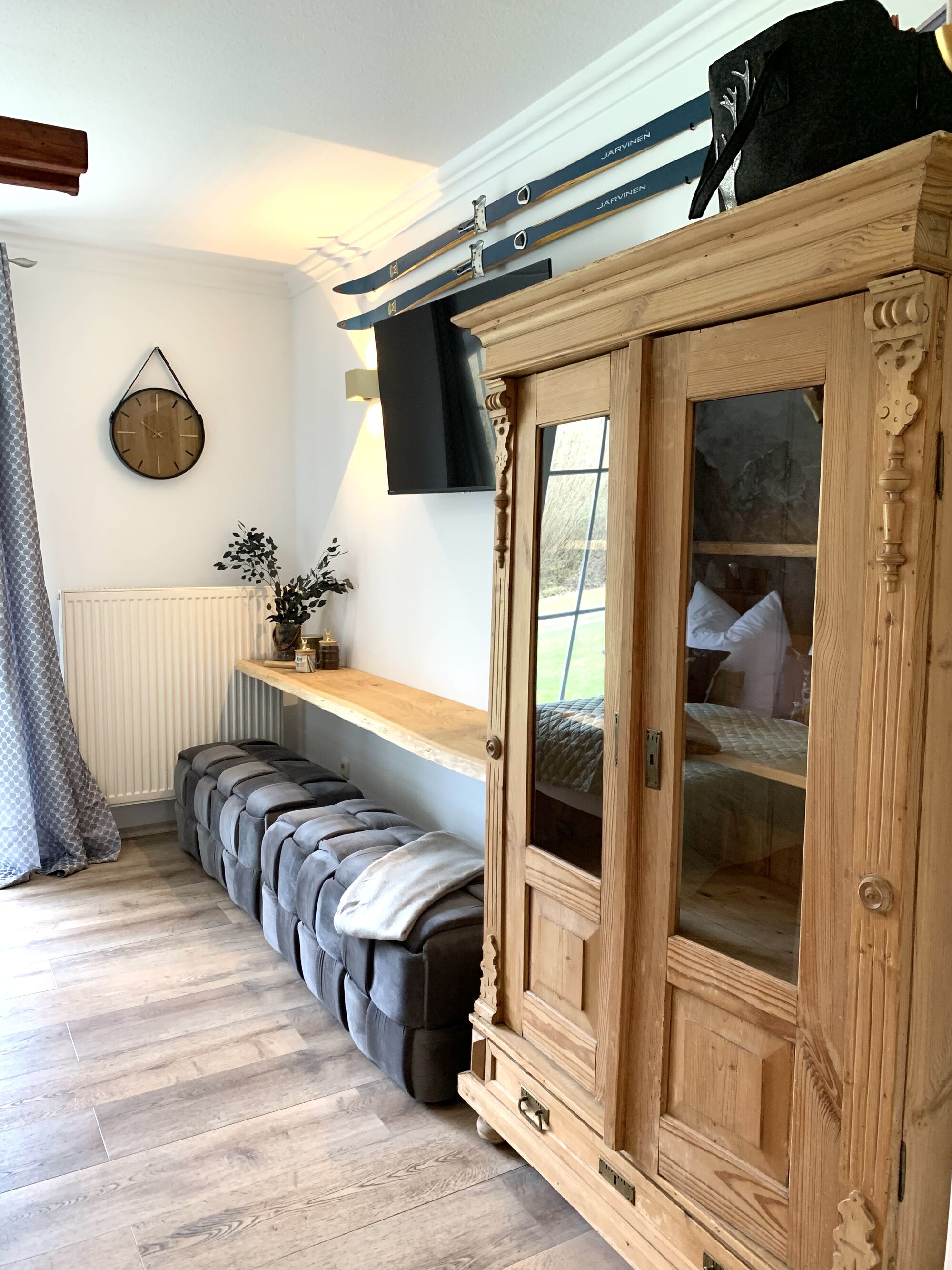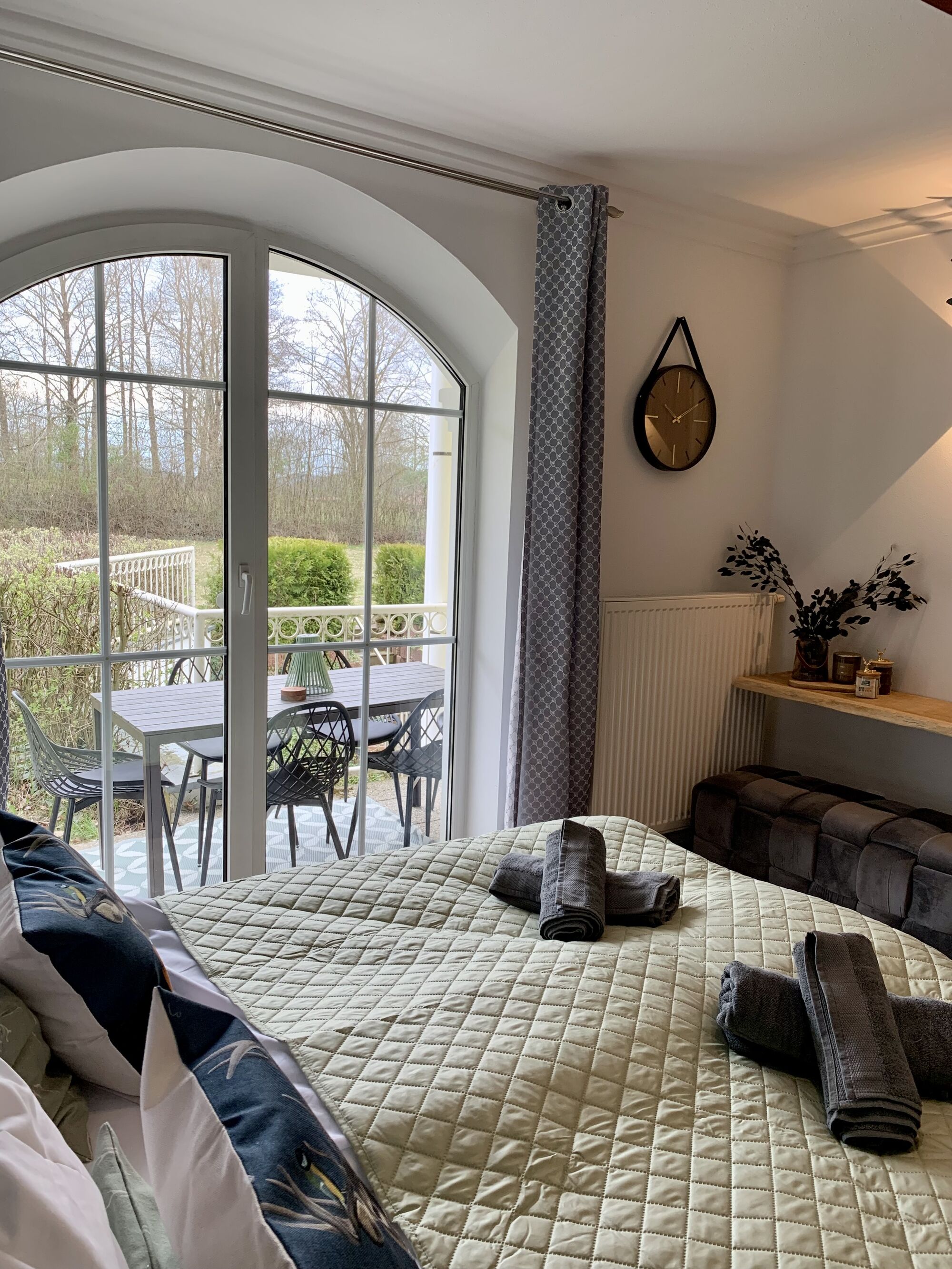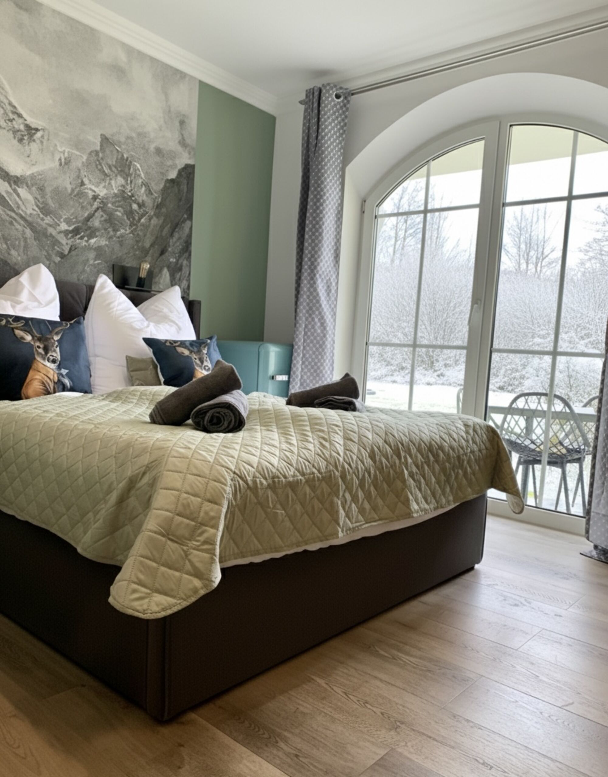 Willkommen im Gutshof Pine Retreat, einem charmanten Apartment der Lindners Hideaways in einer stilvollen Villa im Bayerischen Wald. Frisch renoviert verbindet es modernes Design mit gemütlicher Atmosphäre, große Rundbogen-Sprossenfenster verleihen dem Raum besonderen Charakter.