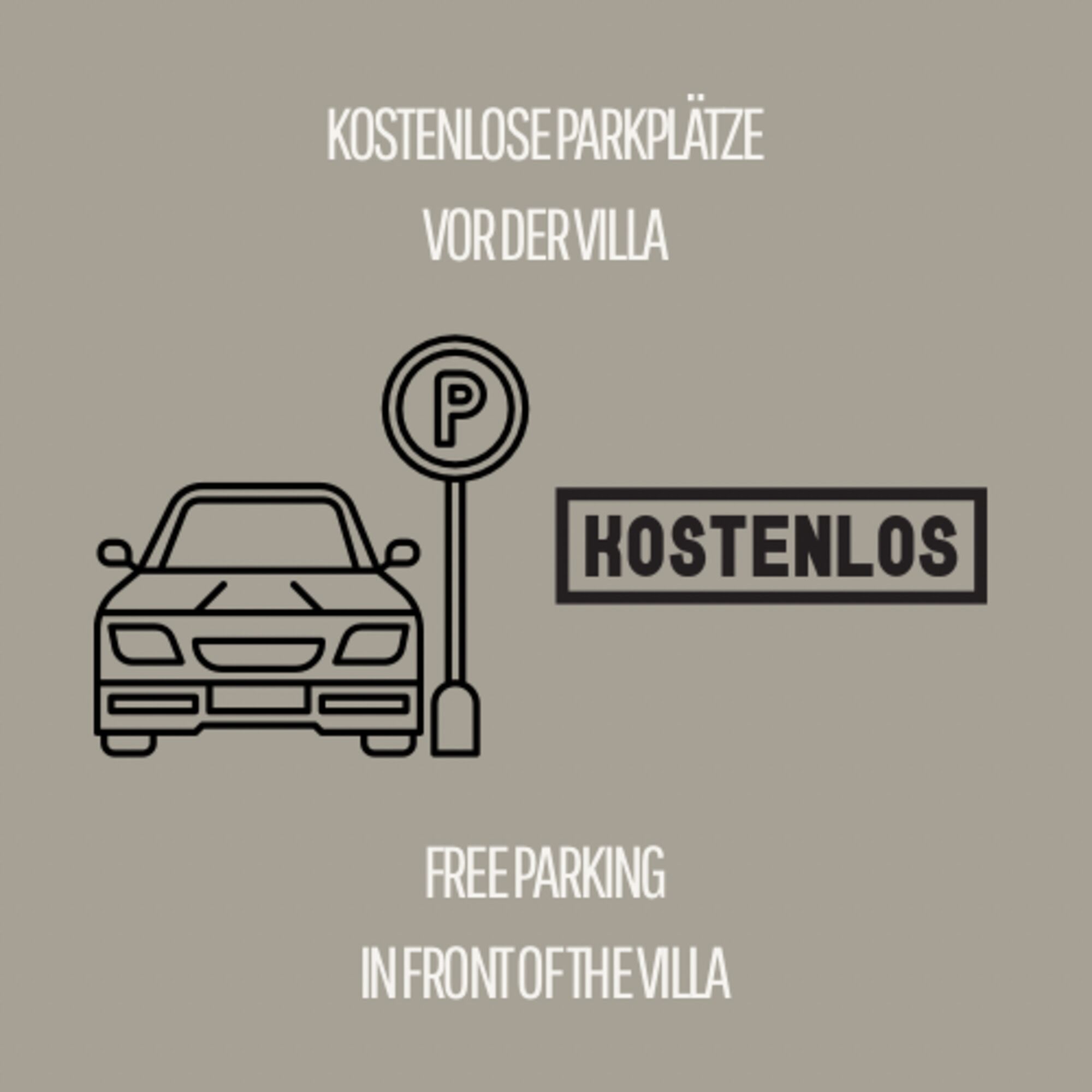 - Kostenfreie Parkplätze direkt vor der Villa