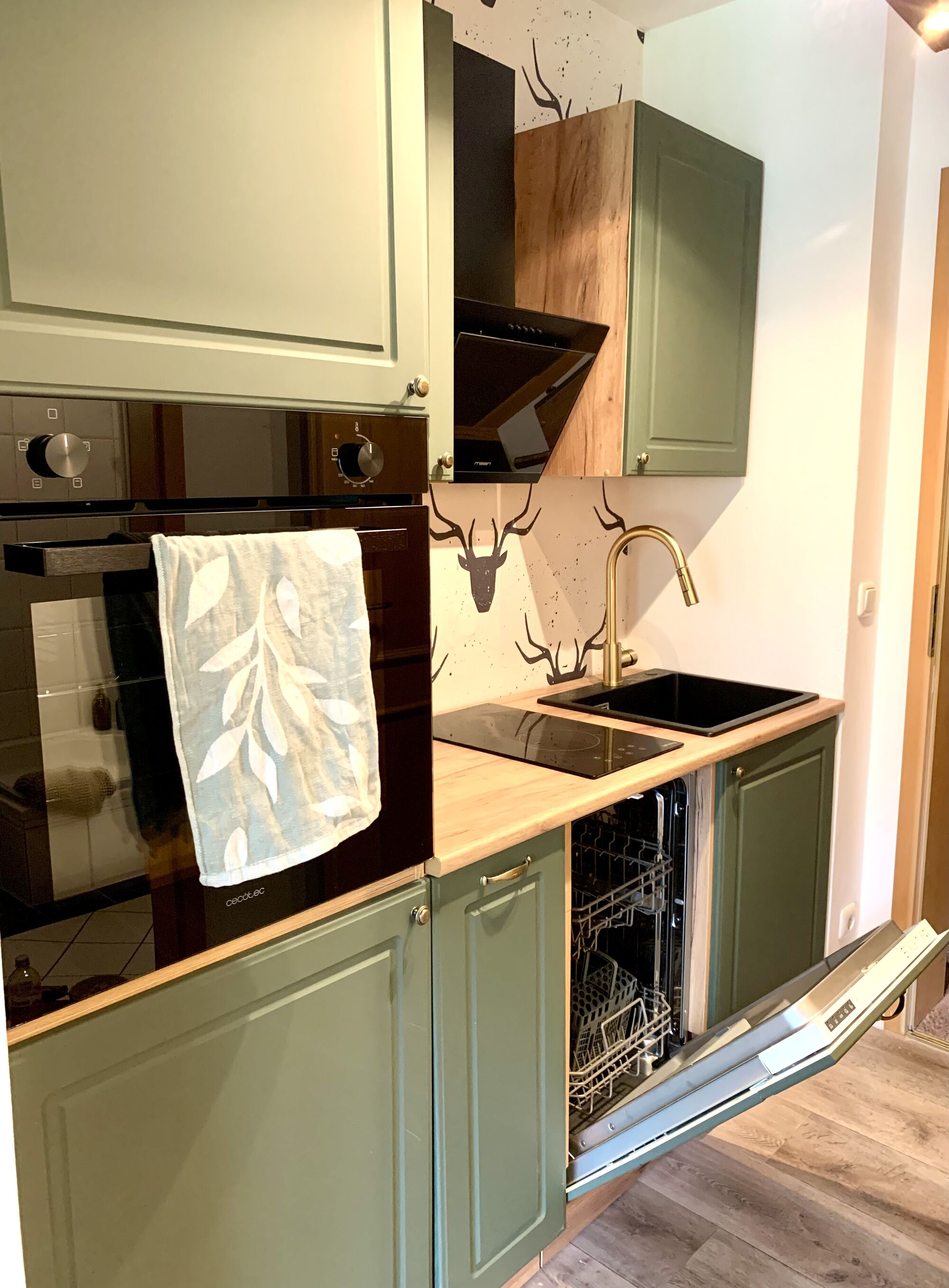 - Voll ausgestattete Küche mit Spülmaschine, Herd & Backofen, Espressomaschine (Siebträger), Toaster, Wasserkocher, Geschirr, Gläser, Besteck, Küchenutensilien, Töpfen, Pfannen, Backzubehör etc.