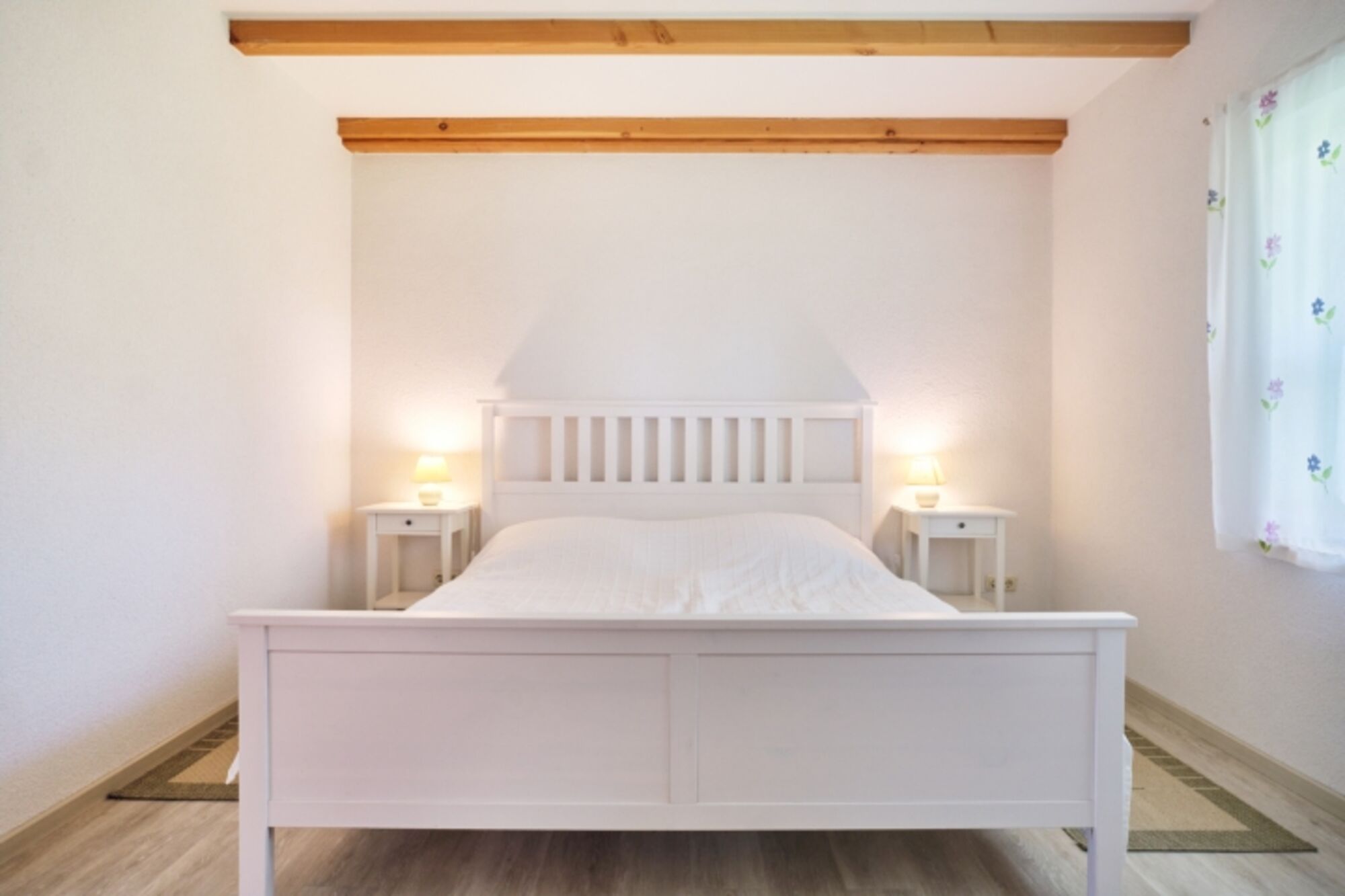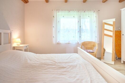 2 Schlafräume: 1 Schlafraum mit 1 Doppelbett im EG (Fußboden: Laminat mit Fußbodenheizung), 1 Schlafraum mit 1 Doppelbett im OG (Fußboden: Laminat)
