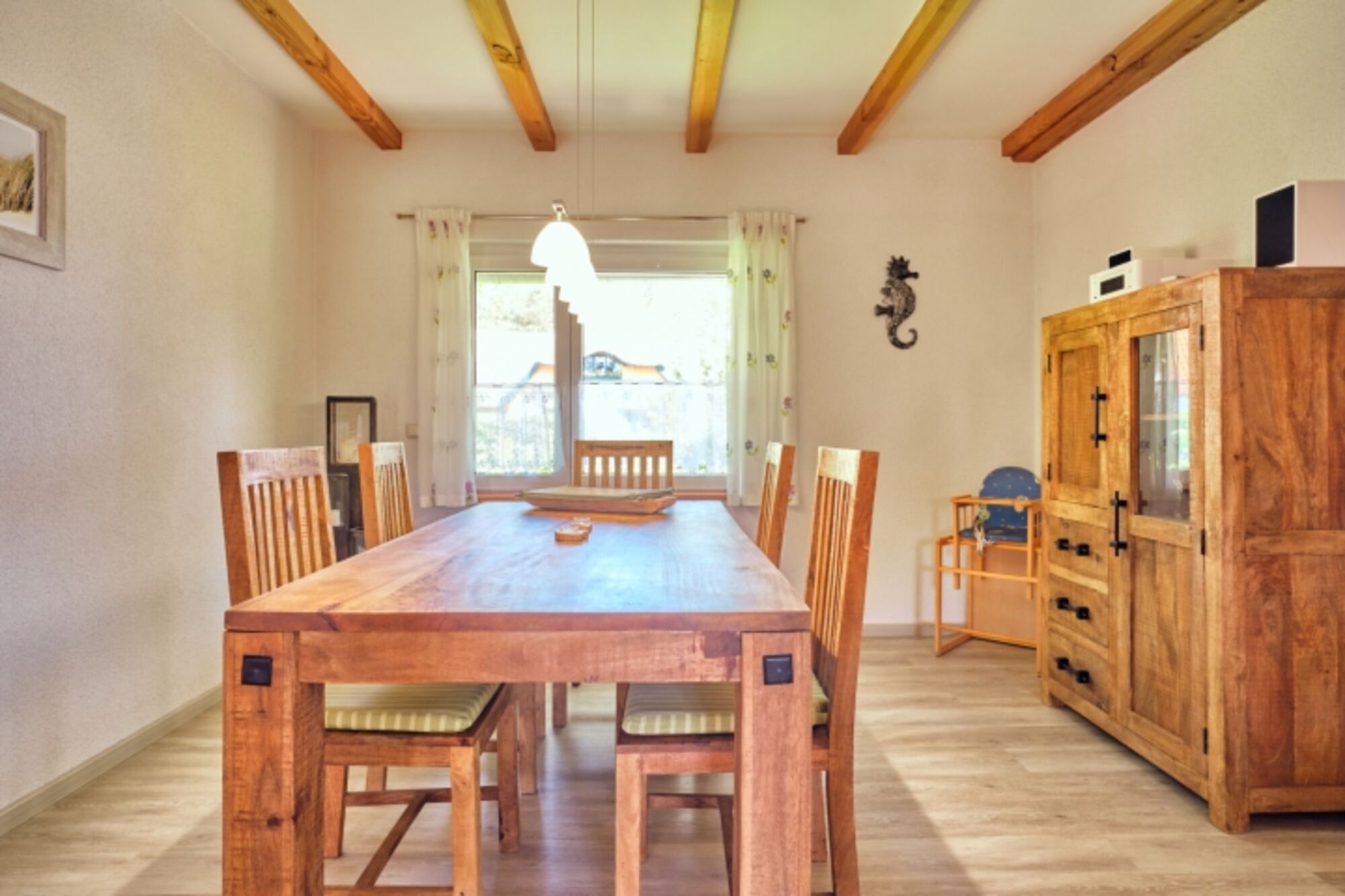 Das stilvoll eingerichtete Domizil für bis zu 6 Personen verfügt auf 2 Ebenen über einen großen Wohnbereich mit Kaminofen, 1 offene Küche, 1 Essbereich, 2 Schlafräume, 2 Bäder, 1 Hauswirtschaftsraum und ein ca. 1.000 m² großes, komplett eingezäuntes Grundstück.