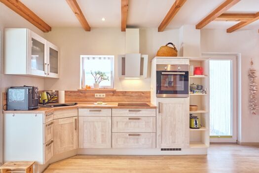 1 offene Küche (Fußboden: Vinyl mit Fußbodenheizung. Die Milchfunktionen des Kaffeevollautomaten sind deaktiviert.)