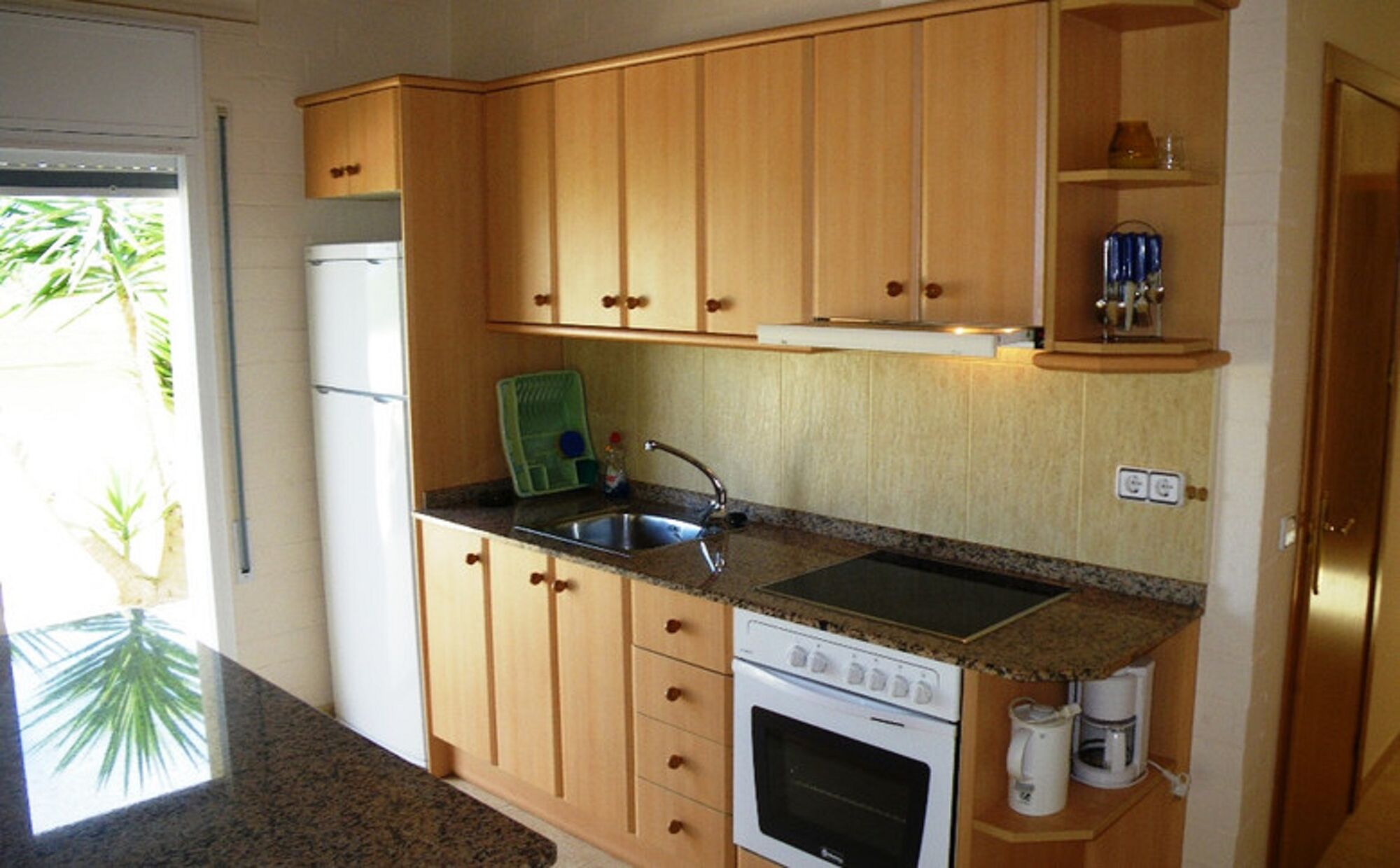 1 Wohnzimmer, 1 deutschsprachiges Fernsehen (SAT- TV), 2 Schlafzimmer, 1 Schlafcouch, 1 Badezimmer und 1 Gäste WC, 1 komplett eingerichtete Küche mit Ceran-Kochfeld, Backofen, Kühlschrank mit Tiefkühlfach, Kaffeemaschine, Waschmaschine und einer separaten Eßtisch-Sitzgruppe für die ganze Familie. Gartenmöbel mit Sonnenliegen sowie PKW-Stellplätze sind direkt am Haus vorhanden, sowie eine Gartenterrasse und ein eigener kleiner Garten mit landestypischen Palmen und Bananenbäumen. Ein großer privater Swimmingpool wird jeweils nur von max. 2 Mietparteien genutzt. Auch ein Grill ist in jedem Ferienhaus vorhanden.