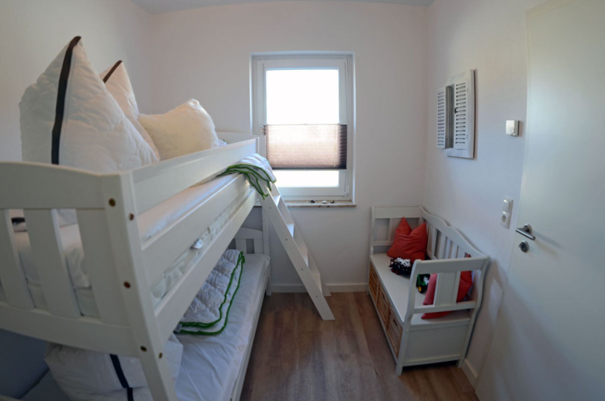 Das 3. Schlafzimmer ist ein Kinderzimmer. Das Etagenbett ist vom zulässigen Gewicht auf Kinder ausgelegt.