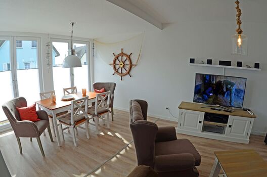 ist die linke Seite der Doppelhaushälfte. Und bietet, bis zu 6 Personen + einem Kleinkind (im separaten Kinderbett), bequem Platz.