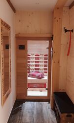 Private Infrarotsauna: Milde Tiefenwärme lockert die Muskeln nach langen Wanderungen durch den Bayerischen Wald.