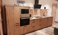 Gourmet-Küche: Voll ausgestattet mit massivem Esstisch für gemütliche Abende nach der Gassirunde.