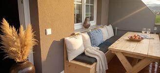 „Perfekt für den ersten Kaffee am Morgen auf dem sonnigen Balkon, während Ihr Vierbeiner noch in den gemütlichen Zirbenholz-Zimmern träumt.“