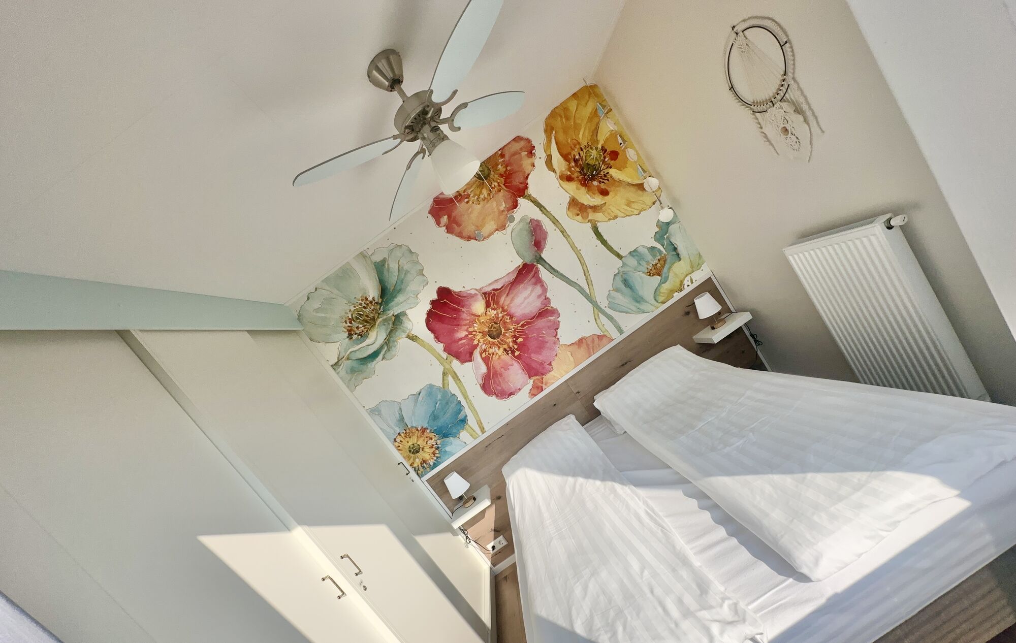 Zwei gemütliche Schlafzimmer (Boxspringbetten)– eines mit Doppelbett, eines mit zwei Einzelbetten – bieten ausreichend Platz und Stauraum.