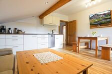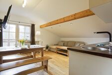 In der Wohnküche befindet sich eine Spülmaschine, Kaffeemaschine, Wasserkocher und Toaster. Mikrowellle auf Anfrage.