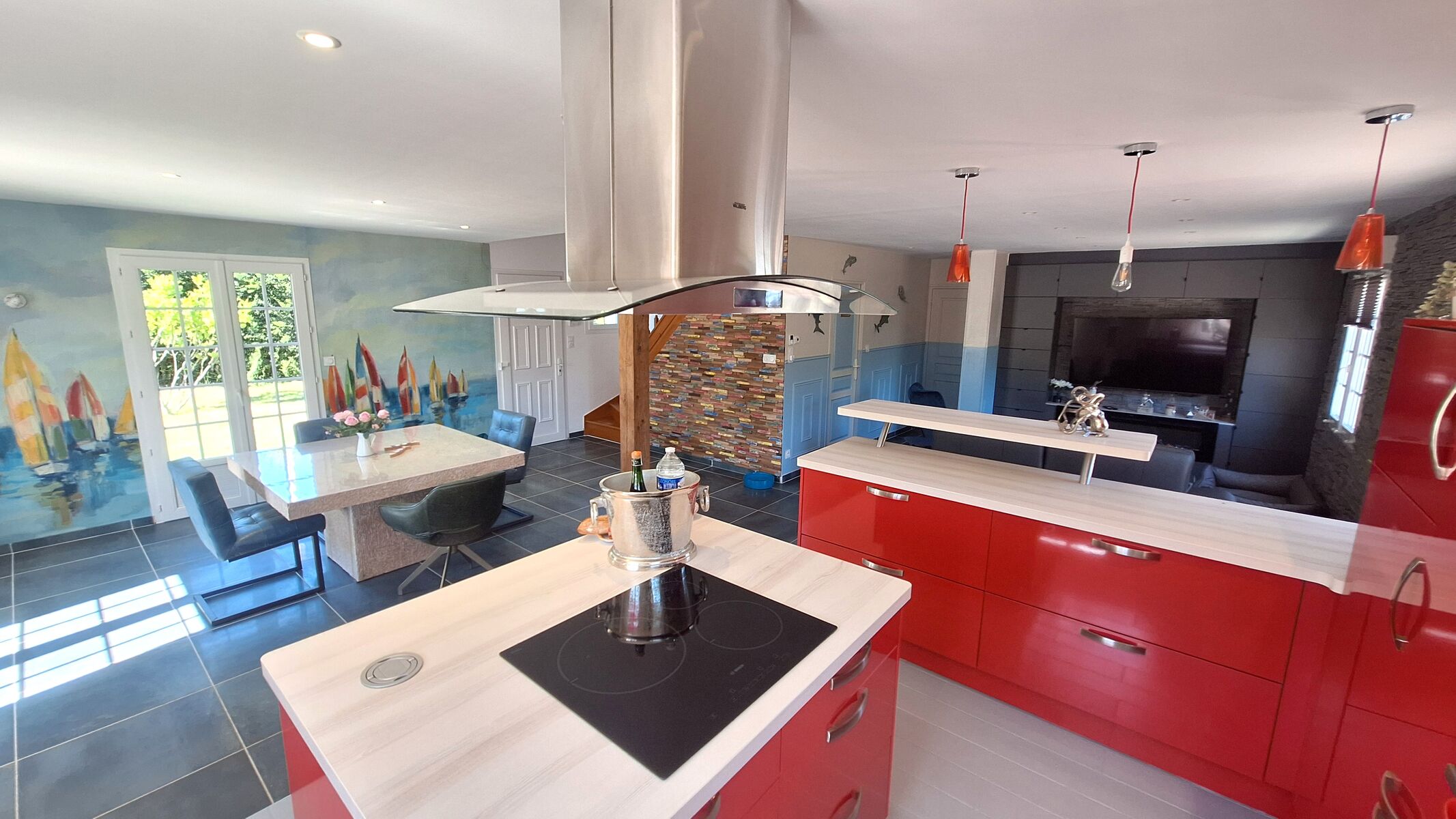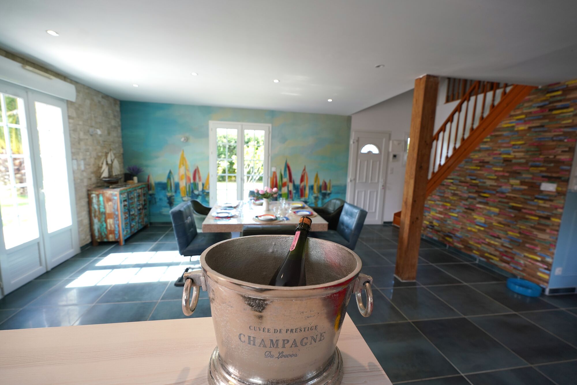 Nur 2,5 Kilometer bzw. 4 Minuten vom Meer, dem Havre von Surville und vom charmanten Hafenort Port-Bail-sur-Mer entfernt, geniessen Sie hier echtes französisches Küstenflair. Grosszügige, helle Räume, eine offene Küche mit Essplatz und direktem Zugang zur Terrasse mit Pool und Kamin machen das Haus zu einem Ort, an dem man sofort abschaltet.