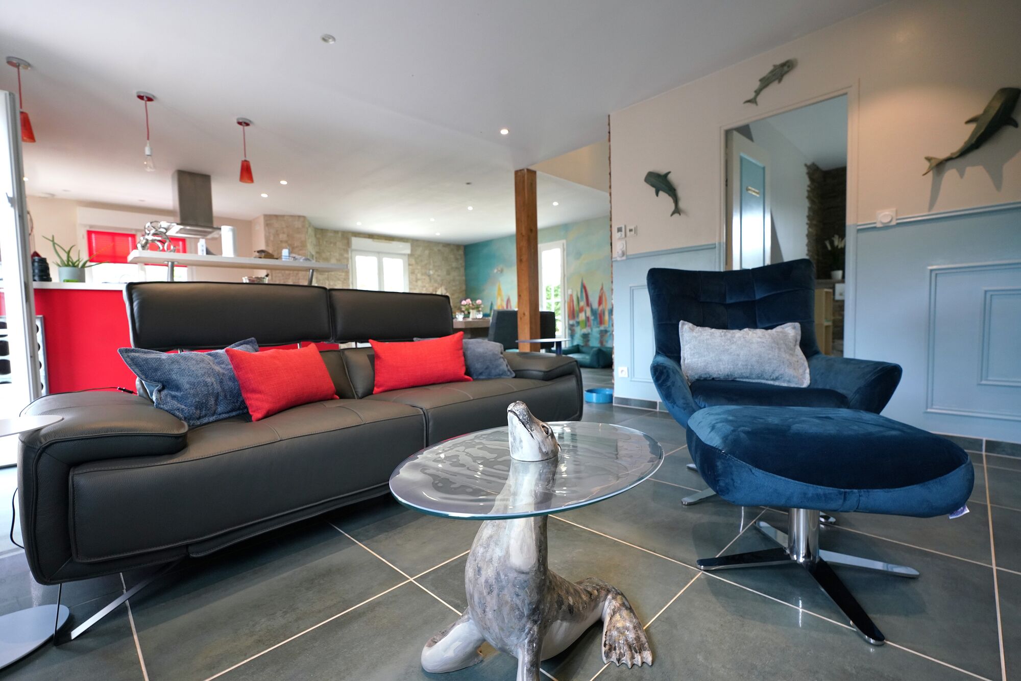 Ein Haus, das sofort ein gutes Gefühl weckt, gemacht für Menschen, die am Meer mit Hunden stilvoll wohnen möchten.