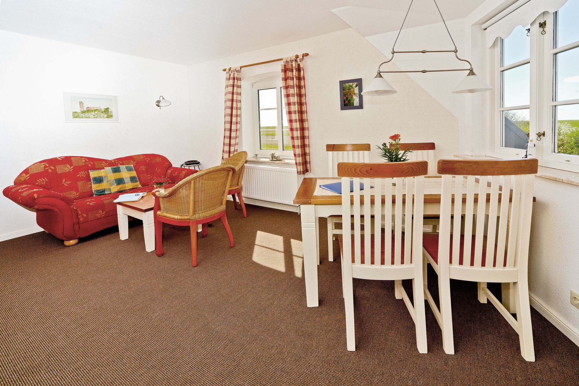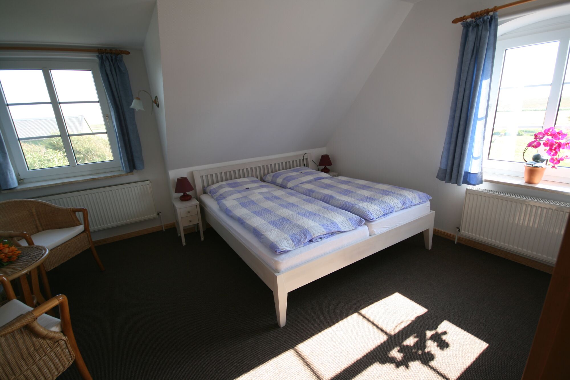 Unsere gemütliche Ferienwohnung "Hooge" befindet sich im ersten OG und verfügt über zwei separate Schlafzimmer. Sie besticht durch ihre tolle Aussicht Richtung Westen: zum Deich, über unsere Schafweiden, in den Abendhimmel und zum Wahrzeichen von Pellworm, der Alten Kirche. Auf Wunsch kann unser leckeres Frühstück in der Friesenstube hinzugebucht werden