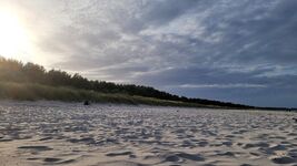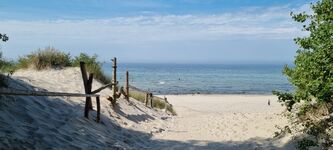 Den feinsandigen, flach abfallenden, ca. 12 km langen Badestrand erreichen Sie in ca. 5 Minuten zu Fuss. Es ist der beliebteste Badestrand Rügens, umsäumt von einem Kiefernwald mit Radweg. An diesem Strand finden Sie keine Hotels oder Ferienwohnanlagen, nur reine und unberührte Natur. Es besteht die Möglichkeit vor Ort einen Strandkorb zu mieten. Den wunderschönen großen Jasmunder Bodden erreichen Sie in ca. 2 Minuten zu Fuss.