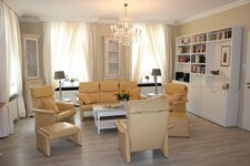 Die Ferienwohnung mit ihren hohen Decken und eleganten Möbeln strahlt eine luxuriöse Behaglichkeit aus. Sie wohnen auf 220 qm im Erdgeschoss eines historischen Kaufmannshauses mit parkähnlichen Garten und Blick auf den Hafen und die Hafencity.