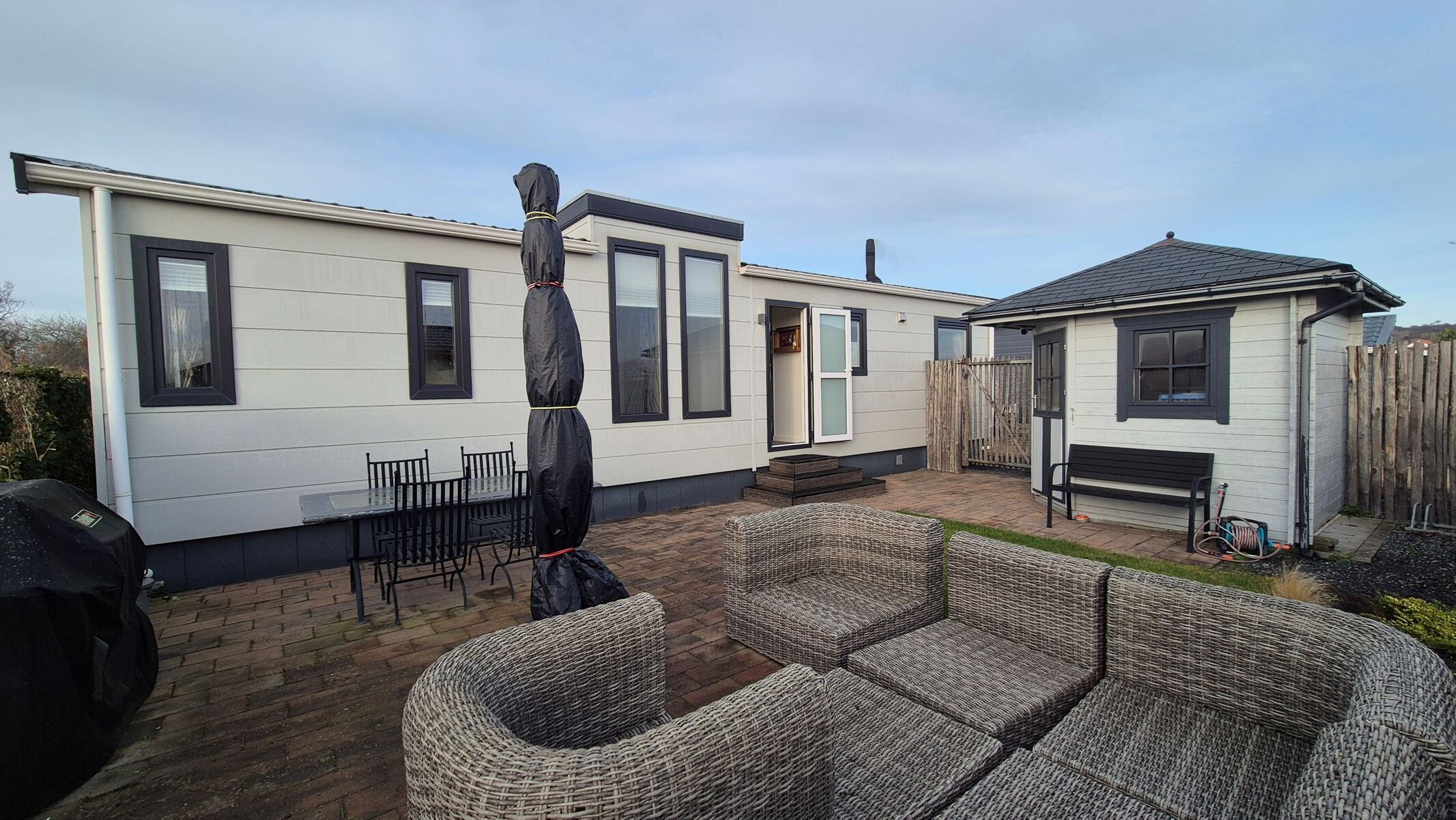 Luxuschalet für 4Pers, nur 318 Schritte bis zum Strand, vollständig eingezäunten Garten.