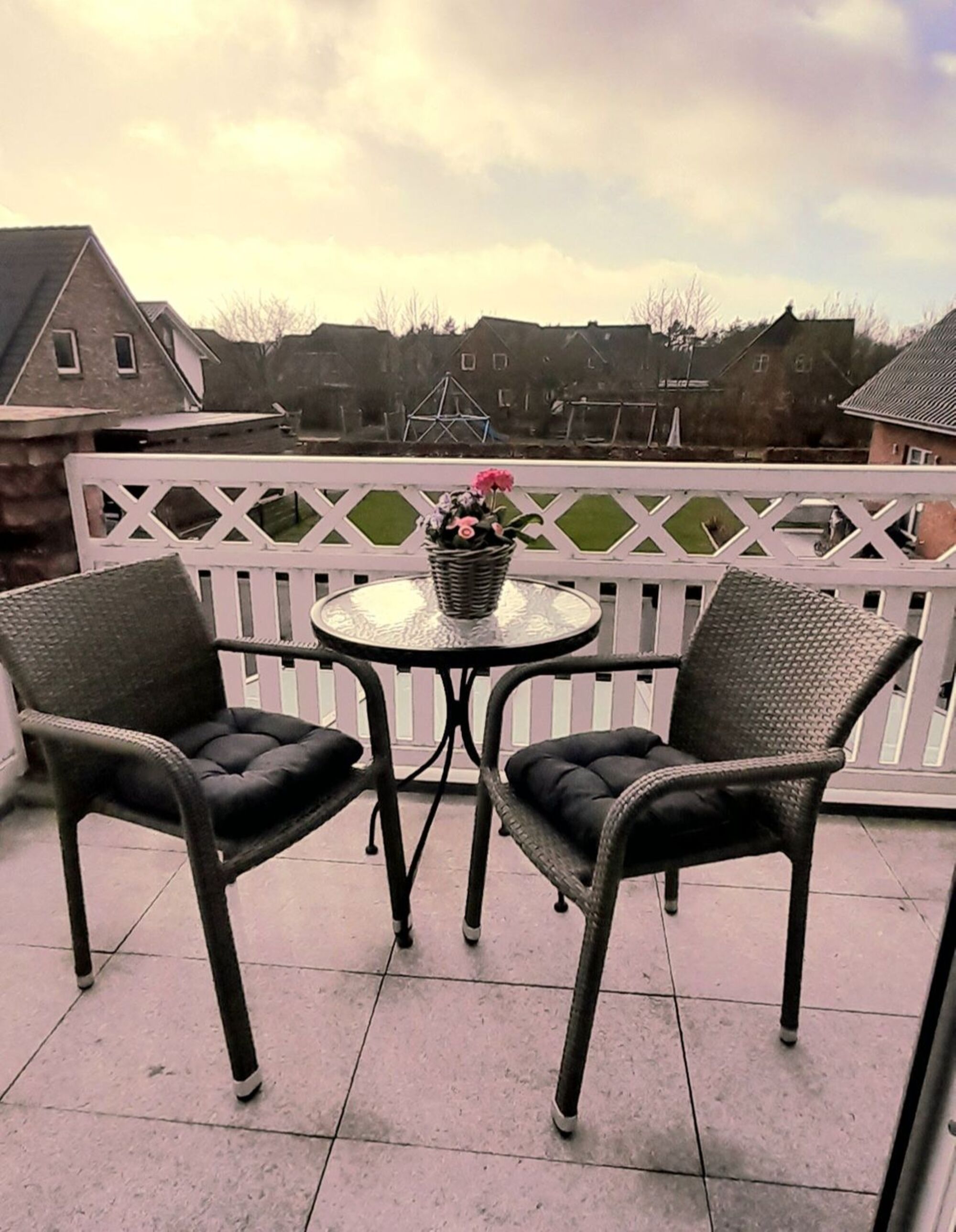 Besonders einladend: der private Balkon mit gemütlichen Gartenmöbeln, ideal für entspannte Stunden im Freien. Für Komfort sorgen außerdem WLAN, Fußbodenheizung und ein eigener Parkplatz direkt am Haus. Fahrräder können Sie sicher in einer abschließbaren Fahrradbox unterbringen.