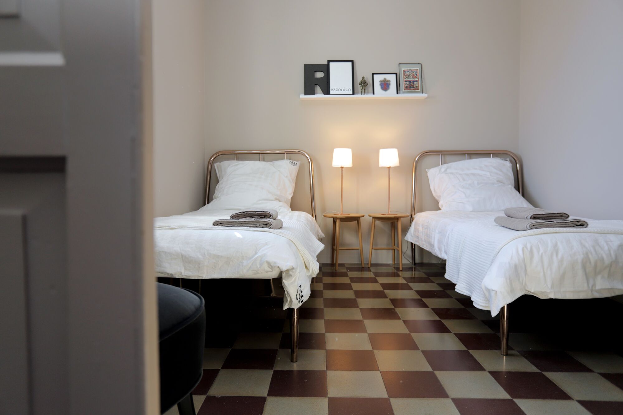 **NOBILTA’** – das einzige Schlafzimmer im Erdgeschoss mit zwei Einzelbetten und eigenem Bad mit großer begehbarer Dusche. Ideal für Gäste, die keine Treppen steigen möchten.