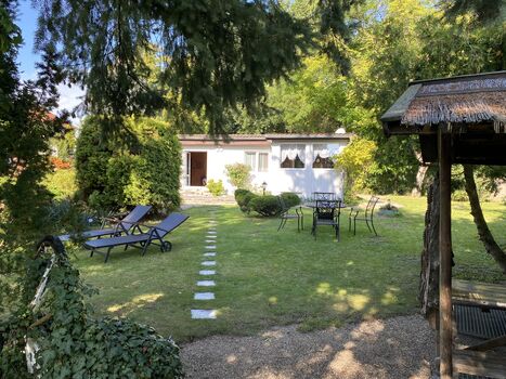 Unser Ferienhaus liegt direkt am See mit eigenem Steg und Ruderboot. Der große Garten ist komplett eingezäunt, so dass Ihr Vierbeiner frei rumtoben kann. Auf dem Steg lässt es sich wunderbar frühstücken oder einfach nur die Wasservögel beobachten und die Sonne genießen. Gleich hinter dem Haus befindet sich ein Wald für ausgiebige Spaziergänge. Potsdam und Berlin sind nur ein Katzensprung entfernt.