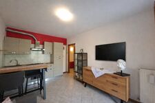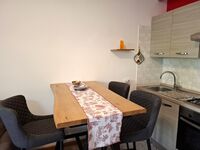 Im Inneren erwartet Sie eine voll ausgestattete Küchenzeile mit Wasserkocher, Kaffeemaschine und allen nötigen Utensilien, um gemeinsam zu kochen und zu genießen. Die Wohnung ist klimatisiert, sodass Sie auch an warmen Tagen stets für angenehme Temperaturen sorgen können. Für Unterhaltung sorgt ein TV und dank kostenlosem WLAN bleiben Sie auch im Urlaub bestens vernetzt.