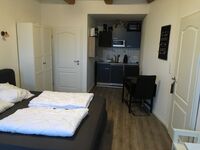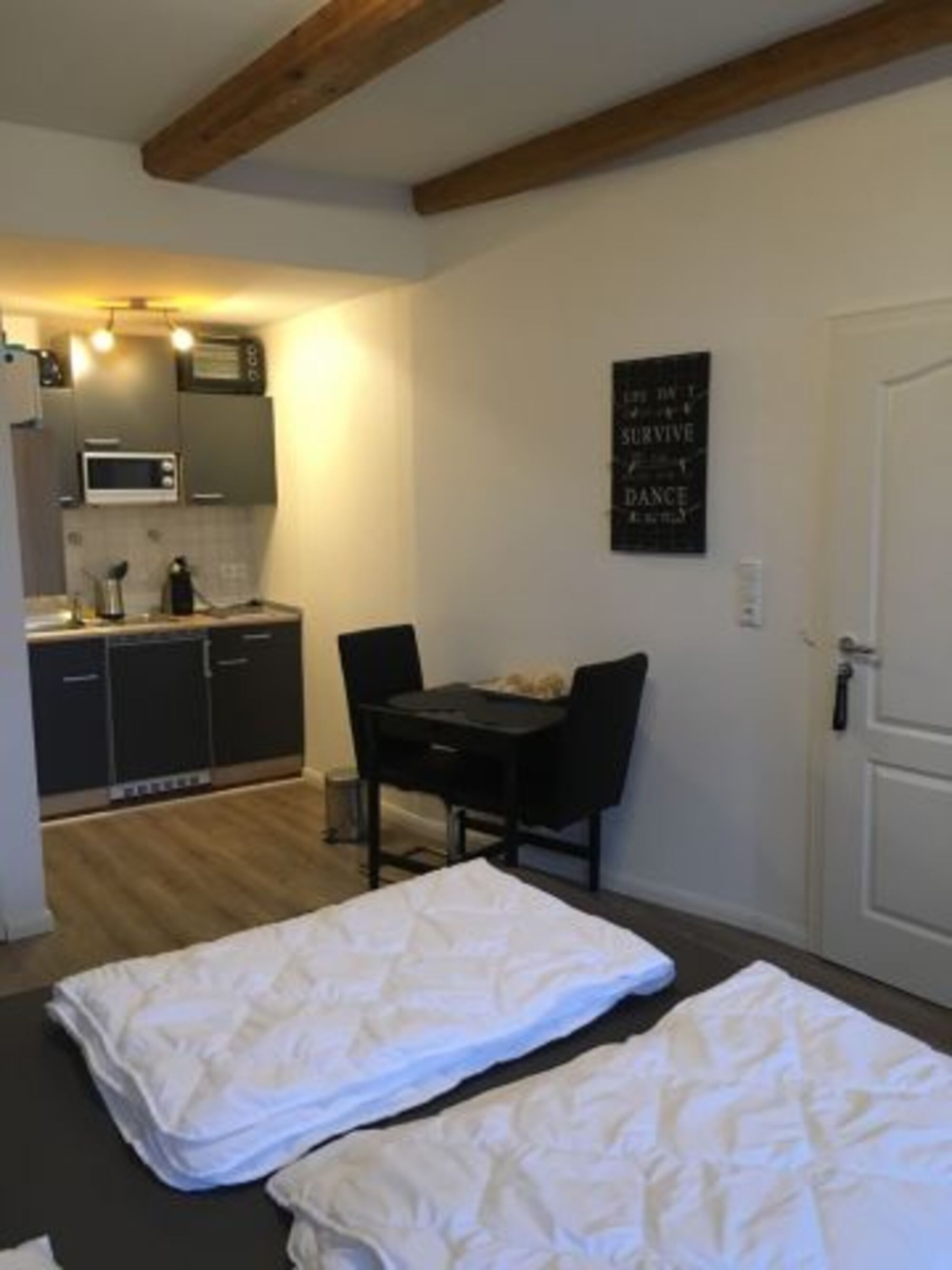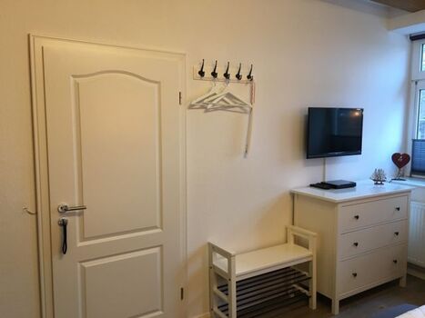 Direkt am wundervollen historischen alten Hafen von Hooksiel liegt diese ca. 30 qm große, für bis zu 3 Personen ausgelegte Ferienwohnung. Die Ferienwohnung befindet sich direkt im Ergeschoss und ist behindertengerecht ausgestattet. Der ebenfalls in die hotelzimmerähnliche Ferienwohnung integrierte Küchenbereich ist mit einer vollständig eingerichteten Singleküche ausgestattet (u. a. 2-Plattenherd, kleiner Backofen, Mikrowelle, Kaffeemaschine, Toaster, Wasserkocher und vieles mehr). Im offen gestaltetem Wohnessbereich befindet sich ein 32-Zoll LCD-TV (ca. 80 cm Bildschirm) mit Blu-Ray Player. Das ebenfalls komplett neu geschaffene Badezimmer verfügt über eine ebenerdige Dusche. Die gesamte Wohnung ist mit Laminat ausgelegt.