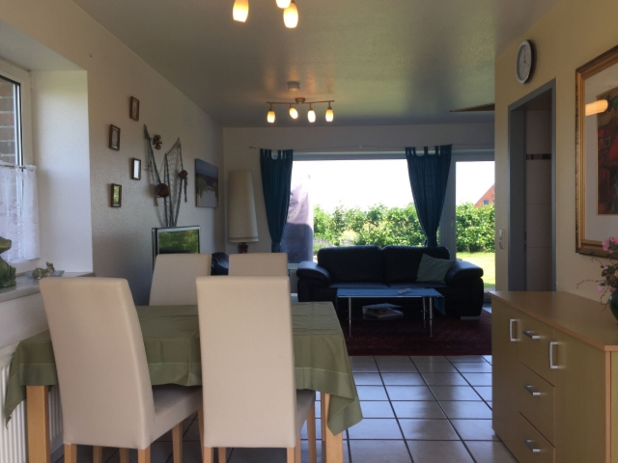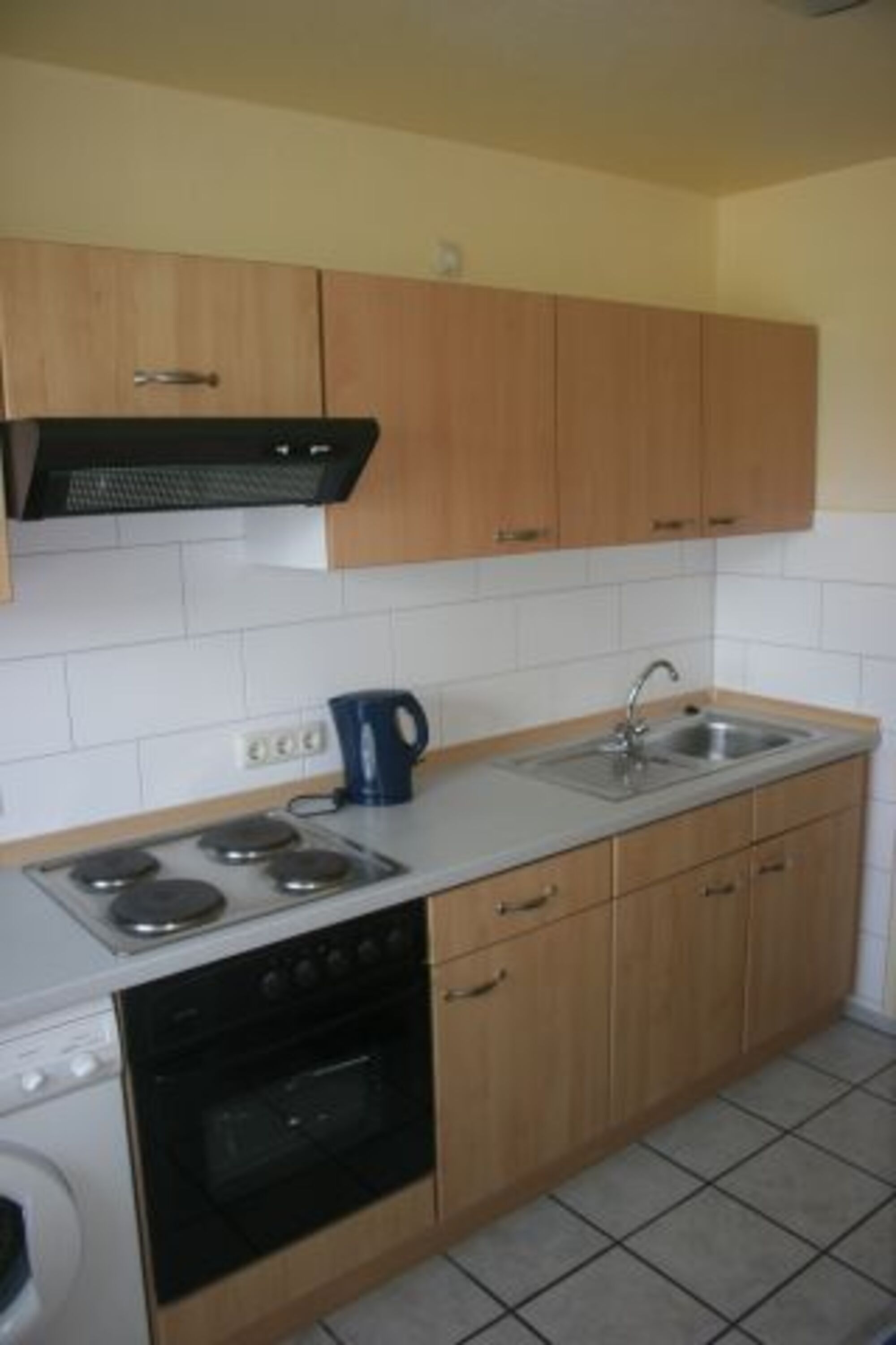 Im EG ist ein Wohn/Essraum mit SAT-TV, Stereoanlage mit CD, DVD-Player und ein Gäste-WC, eine kompl. eingerichtete Küche (4-flam. Herd/Backofen, Kaffeemaschine, Toaster, Mikrowelle, Espressomaschine …) und eine kostenlose Waschmaschine.