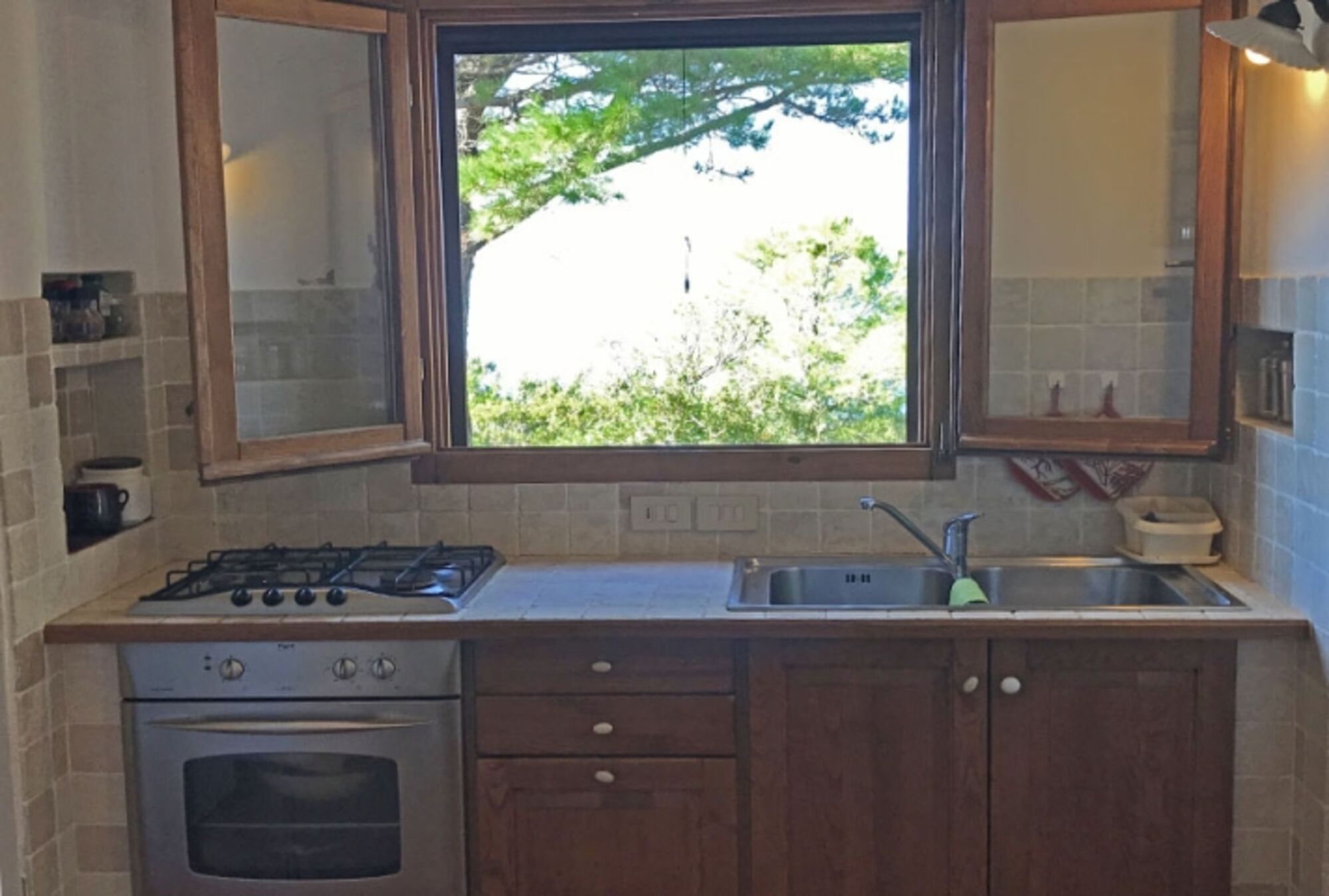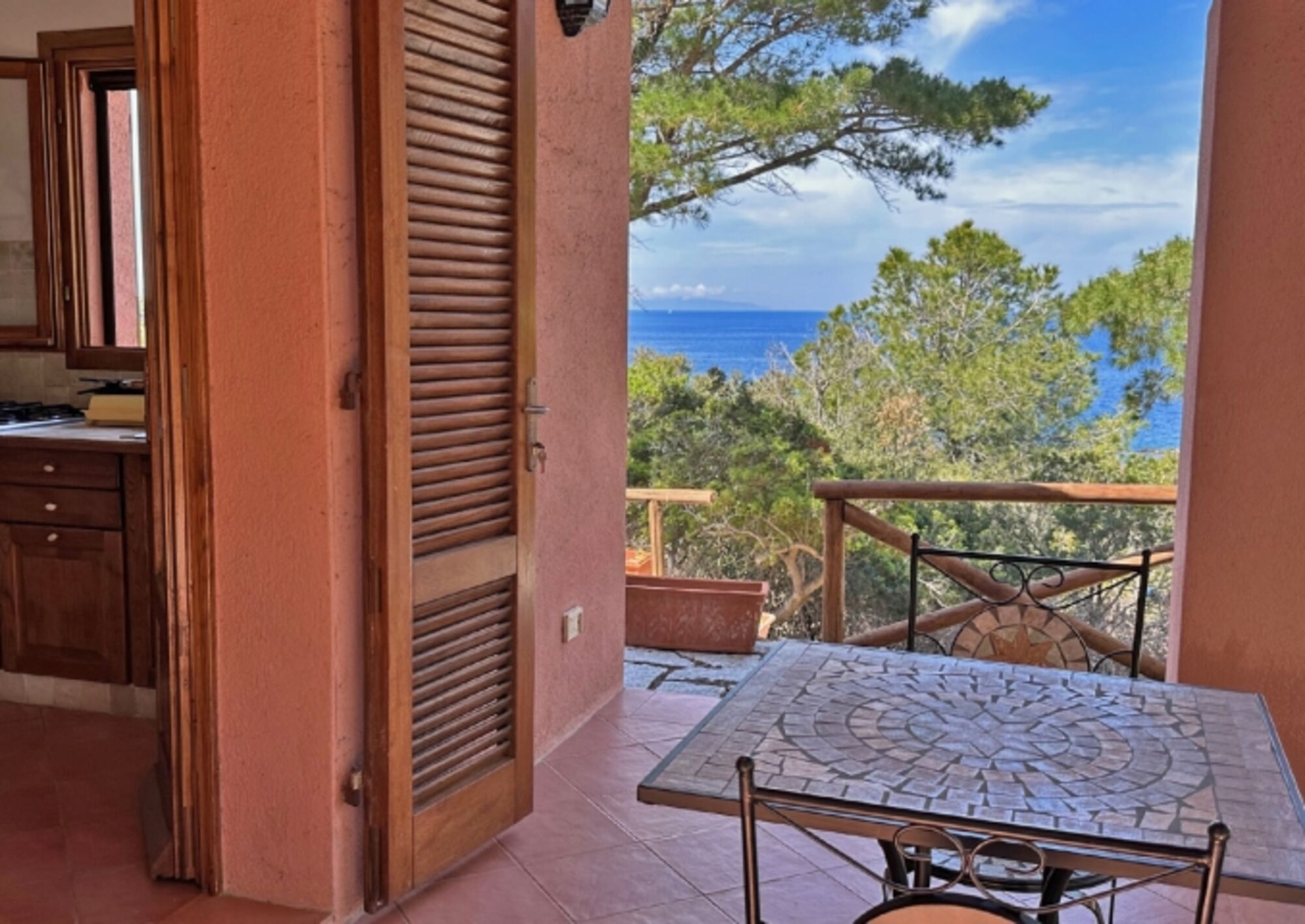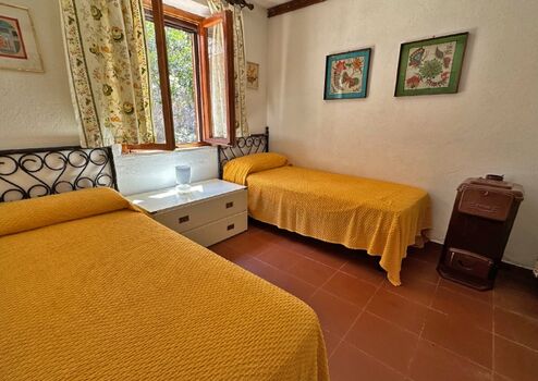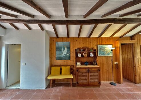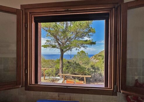 Das Haus bietet im unteren Bereich ein Wohnzimmer mit Sitzecke, verbunden durch zwei Glastüren mit einer großen möblierten Terrasse mit Loggia von der man einen schönen Meeresblick genießen kann, eine komplett eingerichtete Küche mit einer weiteren überdachten Terrasse, die für die Mahlzeiten ausgestattet ist, 1 Doppelbettzimmer, 1 Zweibettzimmer ein Badezimmer mit Dusche.