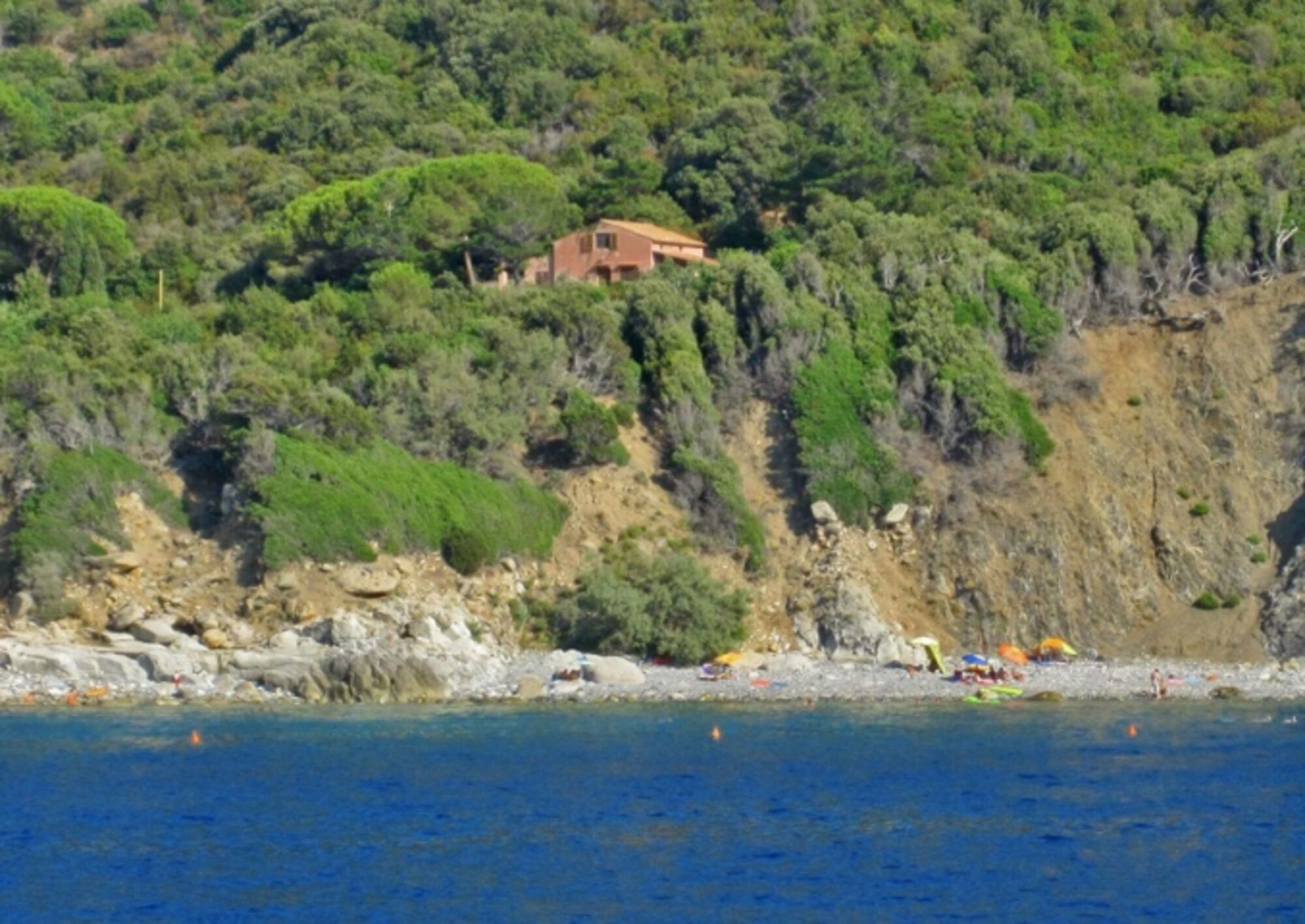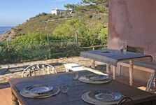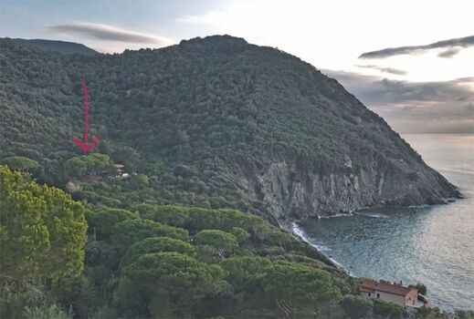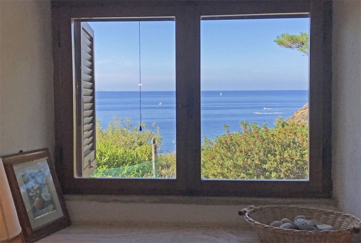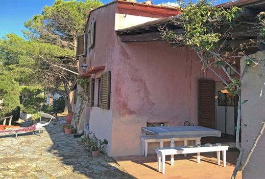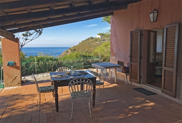 Das charakteristische Elbaner Landhaus liegt mitten im Grünen, umgeben von der Macchia Mediterranea, der typischen Mittelmeervegetation, und einem Blick auf die Bucht von Patresi und den antiken Leuchtturm-il Faro.
