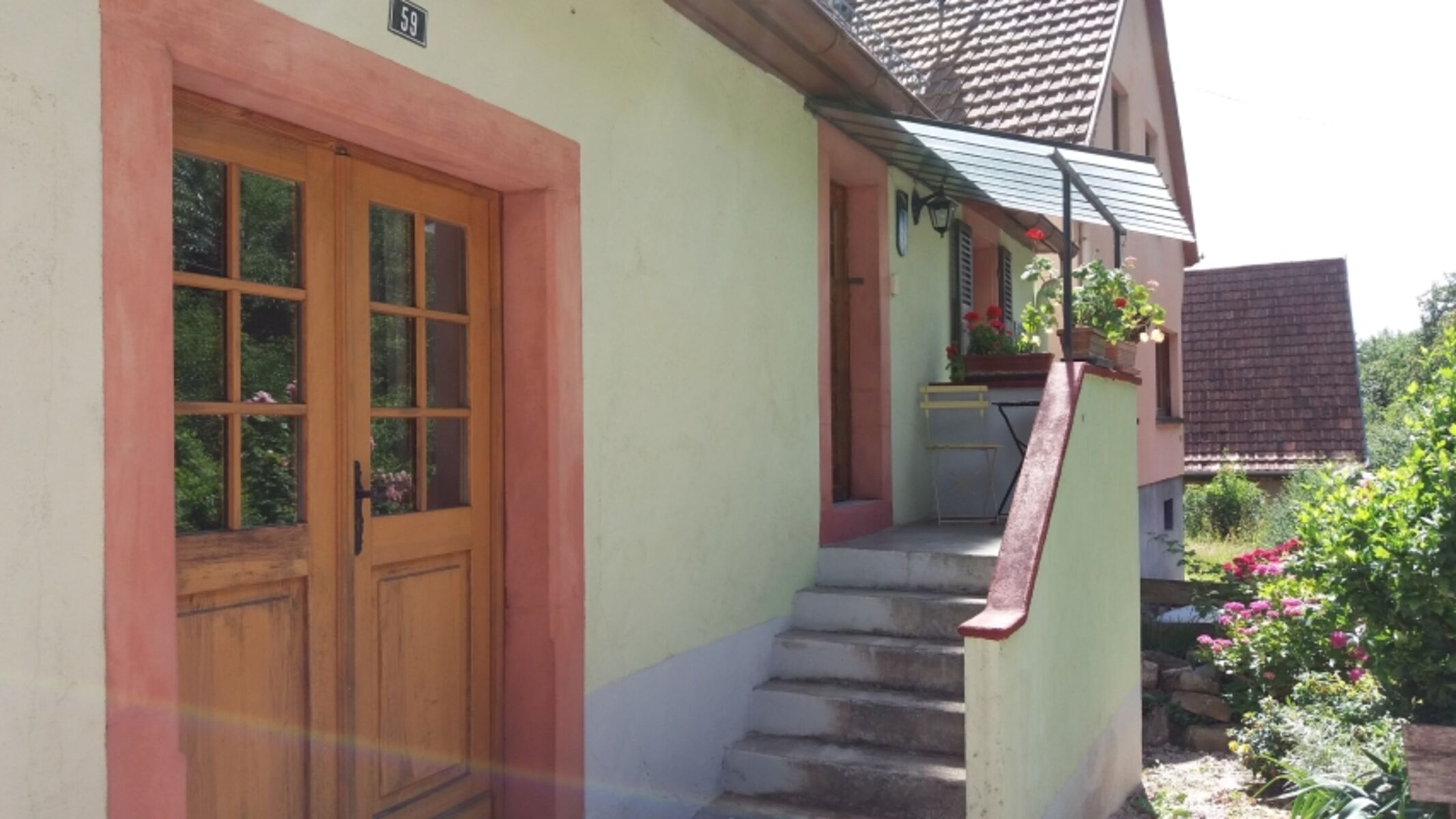 Lage: Das kleine Vogesenhaus liegt in einem Seitental des Bergdorfs am Ortsrand an einem lustigen Bach.