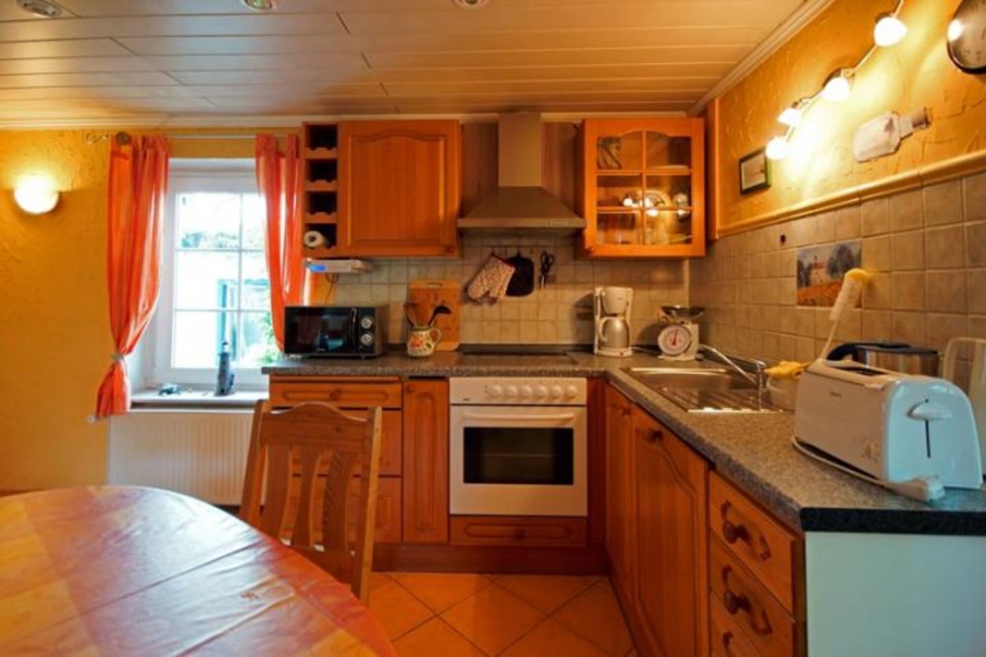 Cerankochfeld, Dunstabzugshaube, Kühlschrank mit Gefrierfach, Korkenzieher / Flaschenöffner, Essplatz in der Küche