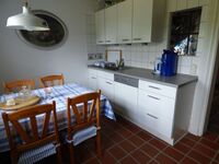 Die Küche ist ausgestattet mit Geschirrspüler, Elektroherd mit 4 Platten und Backofen, Kühl- Gefrierkombination, Kaffeemaschine, Toaster, Wasserkocher, Backutensilien sowie Mikrowelle. Im Hauswirtschaftsraum befindet sich eine moderne Waschmaschine für dringende Wäsche bei längeren Aufenthalten.