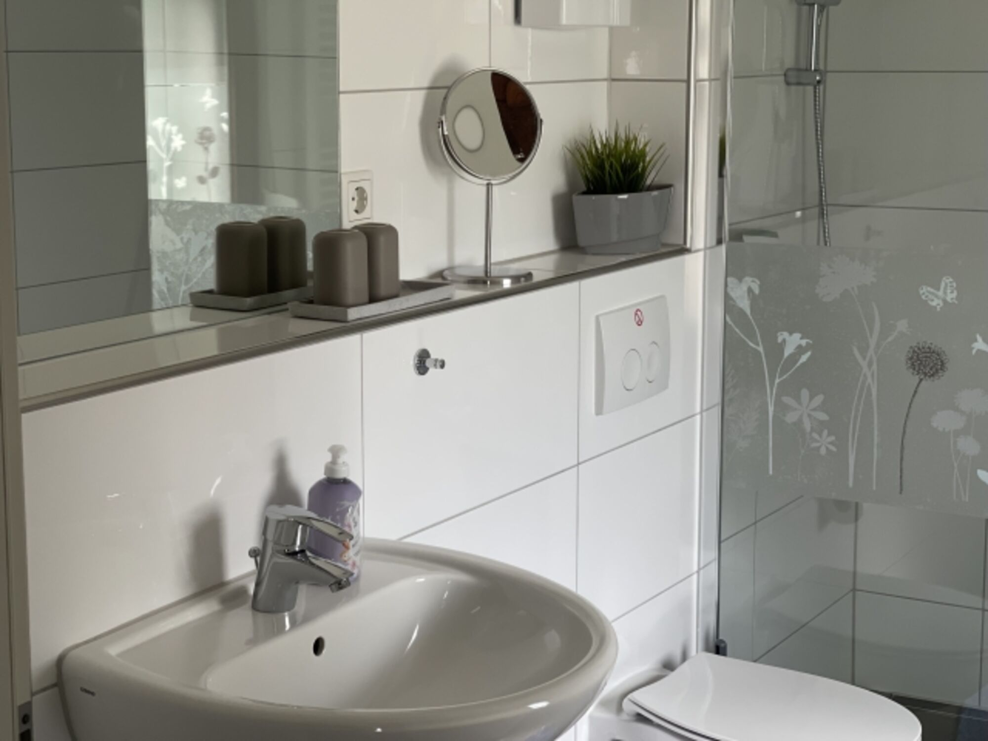 Im Frühjahr 2024 haben wir die Räume neu renoviert. Genießen Sie die große barriere freie Dusche.