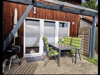 Am Haus befindet sich eine Terrasse, auf der Sie den ganzen Tag lang die Sonne genießen können. Es sind Sitzmöglichkeiten sowie ein Tisch vorhanden. Außerdem können Sie den Sonnenschirm oder den hauseigenen Holzkohlegrill nutzen. Das Gartengrundstück ist komplett umzäunt, so dass auch Eltern mit Kleinkindern und Hundebesitzer ausspannen können. Es ist außerdem ein Sichtschutz (Höhe 1,80m) zum Nachbarhaus vorhanden, so dass die Privatsphäre auf der Terrasse gewährleistet ist.