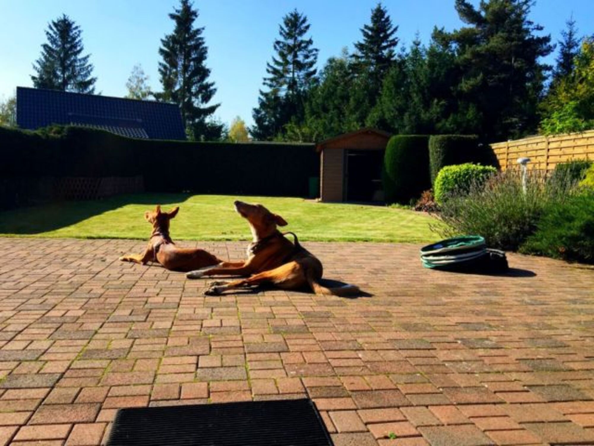 Genießen Sie im Sommer sonnige Stunden auf der Terrasse, während Ihre Hunde im Garten spielen oder Siesta im Schatten halten.