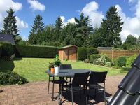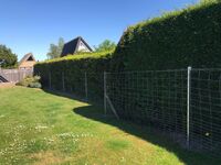 Es verfügt über einen etwa 450 qm großen privaten Garten mit 1,80 Meter hoher ausbruchssicherer! Einzäunung, ideal für den Urlaub mit Hunden. Hier können bis zu 4 Menschen und 3 Hunde, (eventuell auch mehr) entspannen. Die mögliche Gesamtzahl der Hunde richtet sich aufgrund der räumlichen Gegebenheiten nach der Größe der Hunde. Daher fragen Sie im Einzelfall bitte an.