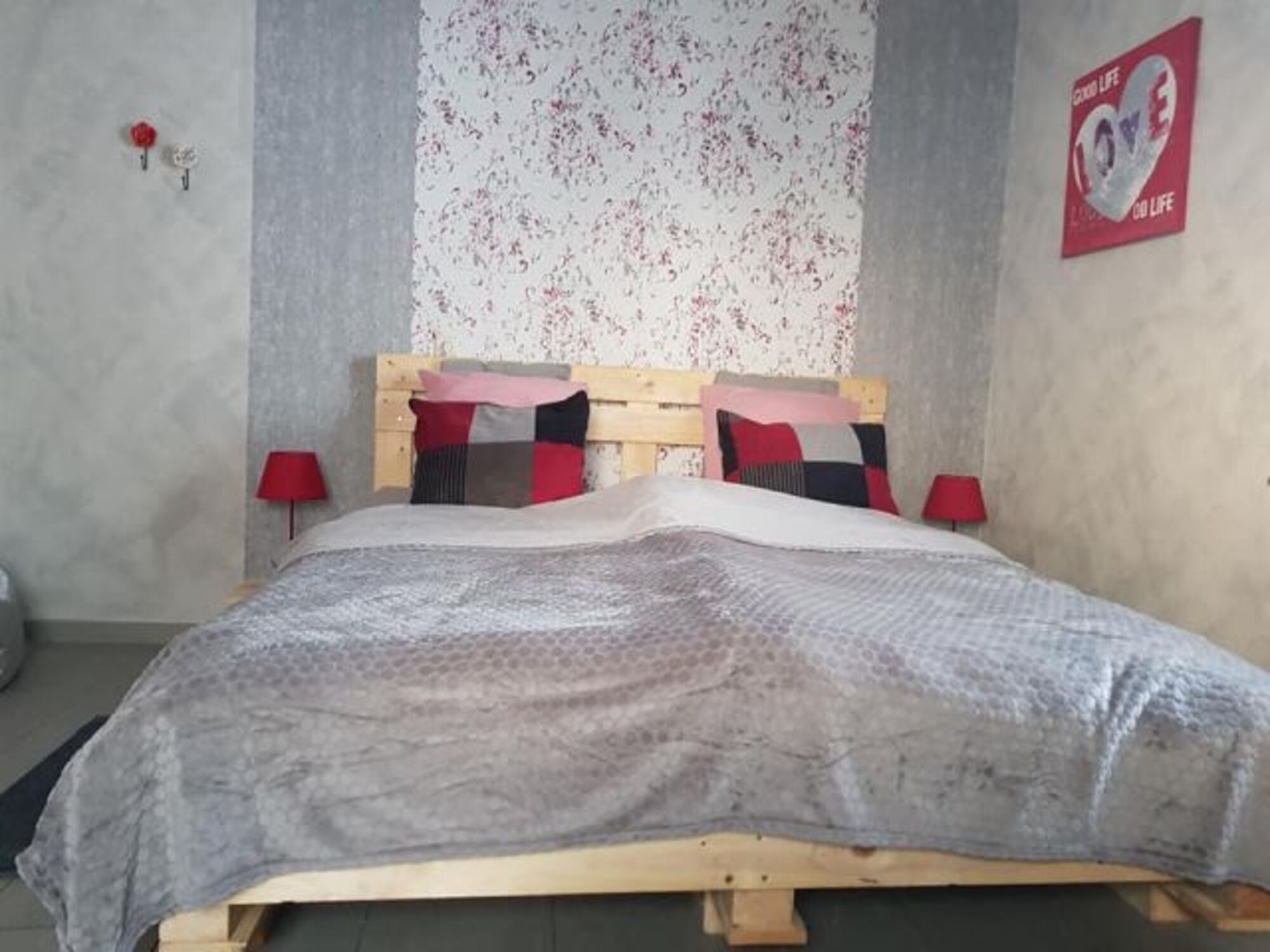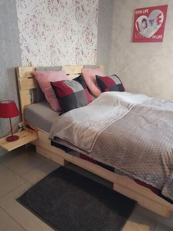 - Schlafzimmer : Doppelbett 1,8 m auf 2,0 m (Lattoflex verstellbar mit 7Komfortzonen Matratze), Kleiderschrank (3 türig) , Sessel.