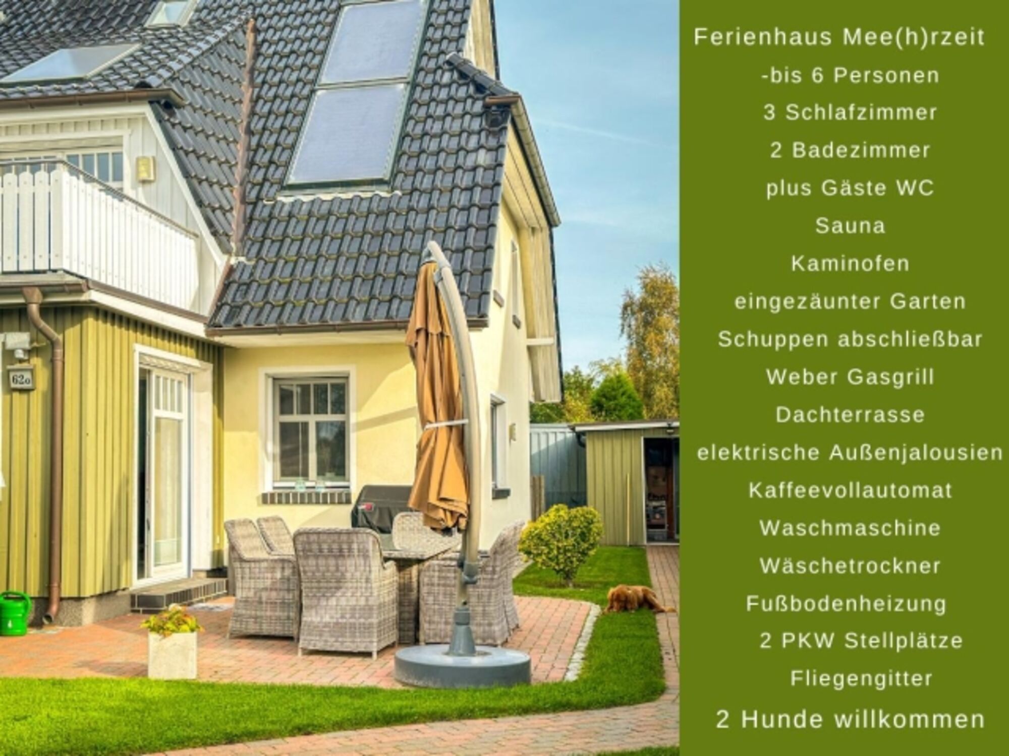 Du suchst das Besondere für deinen Urlaub an der Ostsee? Ein Zuhause, das 5-Sterne-Luxus mit echter Herzlichkeit für deine Hunde verbindet? Dann herzlich willkommen im Ferienhaus „Mee(h)r Zeit“ in Zingst. Hier musst du dich nicht zwischen exklusivem Design und deinen treuen Begleitern entscheiden – bei uns genießt ihr beides.