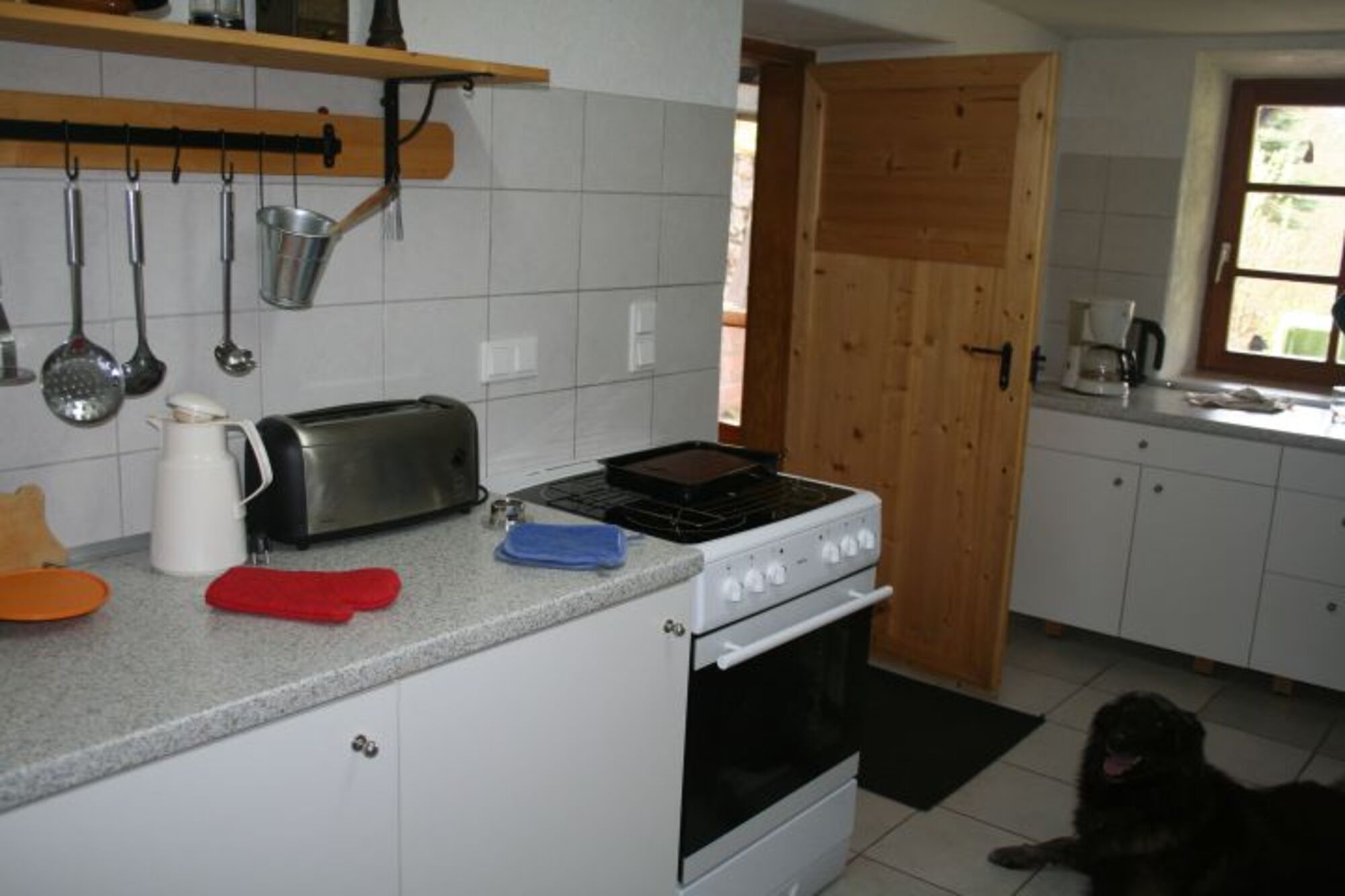 "fiffi"ge Kriterien: Hier sind Sie mit großen und mehreren Hunden herzlich willkommen. Der Garten ist ca. 1 m hoch eingezäunt. Für eine kleine Erfrischung sorgt der Bach, der am Grundstück vorbei fließt. Gassi gehen und wandern direkt vom Haus aus möglich.