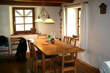 Einrichtung: Wohnfläche ca. 100 qm. EG: Wohn-Esszimmer mit urgemütlichem Kachelofen (Zierkamin). Weiter können Sie im Wohnzimmer auf der Couch ein Buch lesen oder diese zu einem Doppelbett umfunktionieren. Großer Esstisch mit Platz für bis 8 Personen. SAT-TV. Radio. CD-Player. Komplett ausgestattete Küche mit Holzofen, E-Herd mit Cerankochfeld. Toaster, Wasserkocher, Mikrowelle, Kaffeemaschine, Kühlschrank mit Gefrierschrank. Abstellraum. Gäste WC. Badezimmer mit großer Dusche, 2 Waschbecken, WC.