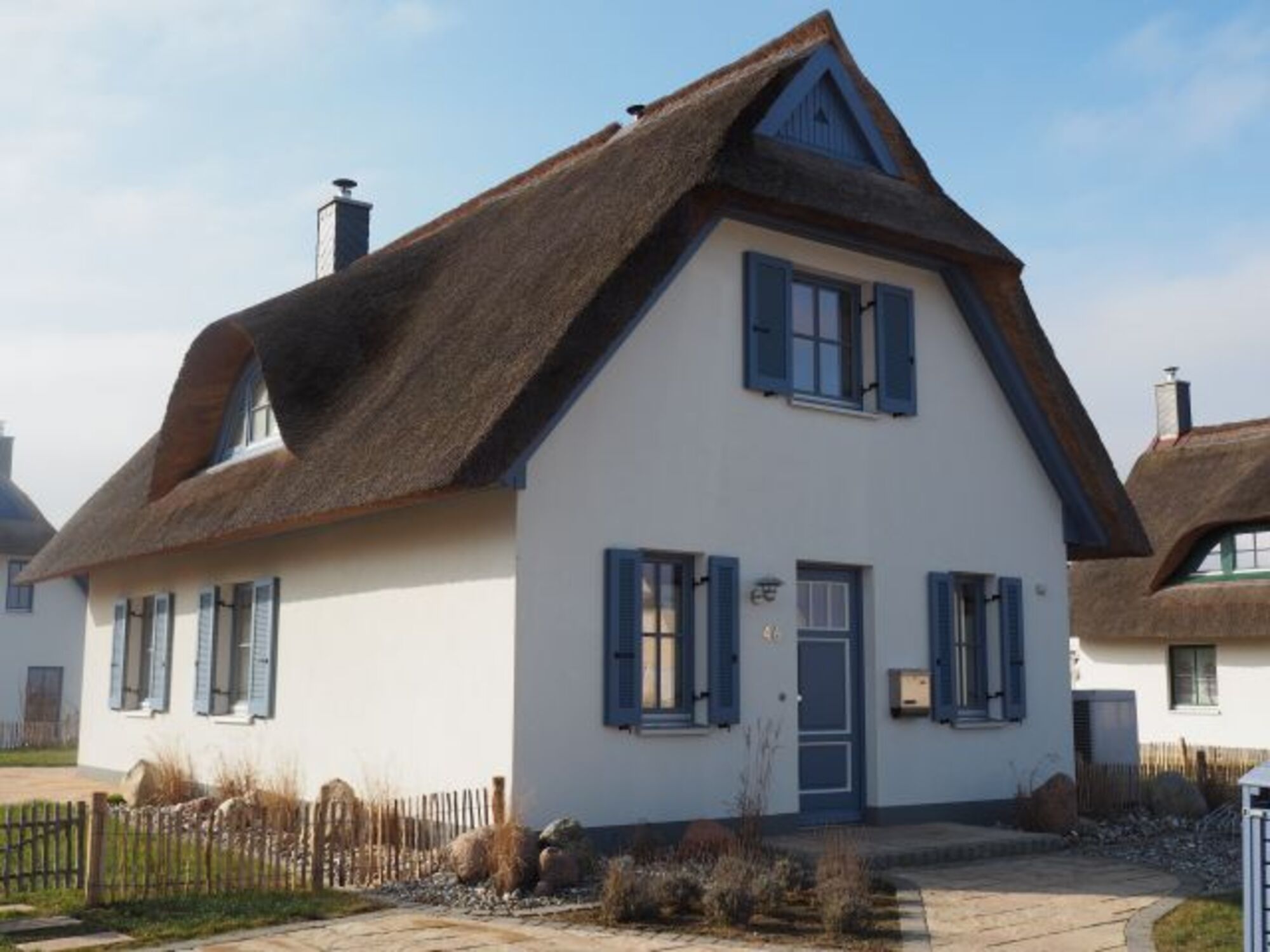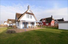 Dieses sehr hochwertige und liebevoll eingerichtete Ferienhaus unter Reet (97 qm) liegt nur ca. 500 m vom Strand entfernt. Es befindet sich auf einem ca. 580 qm großem umzäunten (50cm hoher Staketenzaun) Grundstück z. T. mit Meerblick und erstreckt sich über zwei Wohnebenen (Fußbodenheizung).