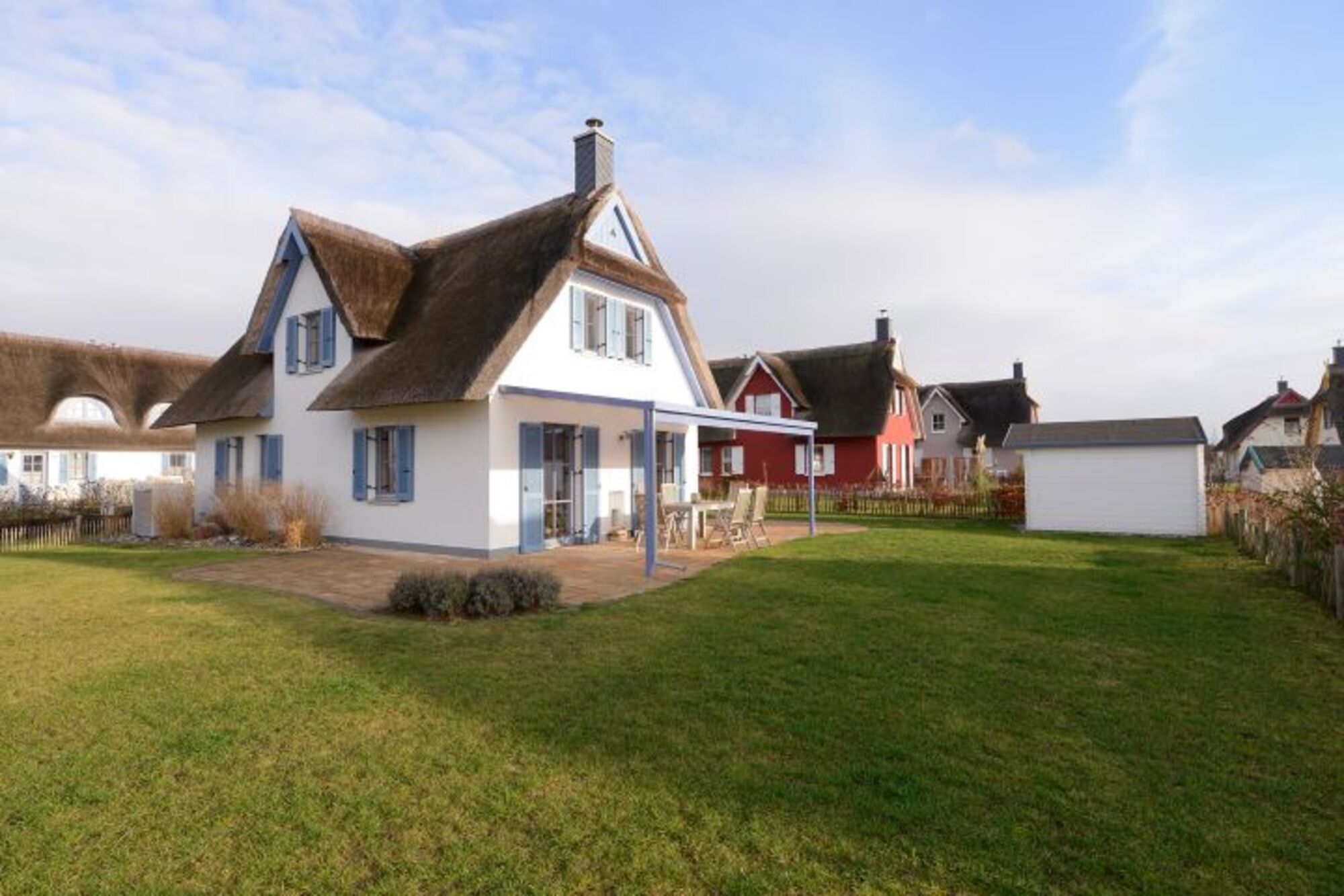 Das 2014 erbaute Haus liegt in in einer Reetdachhaus-Siedlung. Das Gebiet wird von Feldern begrenzt. Zum Naturstrand (500m) führt ein Feldweg. Neben einem Bad in der kinderfreundlich flach abfallenden Bucht lädt der Strand zum Spaziergang und auch zum abendlichen Grillen ein, bei dem man die Sonne hinter der Küste verschwinden sehen und die zahlreichen Vögel beobachten kann. Zum bewachten und bewirtschafteten Strand (mit DLRG, Kiosk, Café, Minigolfanlage) fährt man 5 Minuten mit dem Auto oder geht am Naturstrand noch 500 m weiter. Dort befindet sich auch der 4-Sterne Ostseecamping Ferienpark Zierow mit Restaurants, Wasser- und Sportzentrum, Hallenbad, Wellnessbereich, kleinem Indoor-Spielplatz und Streichelzoo. Der große Indoorspielplatz von Wismar, das Mumpitz, ist nur 15 Autominuten entfernt sowie auch das Freizeit- und Erlebnisbad Wonnemar mit Fitness-, Tennis- und Badmintonanlage.