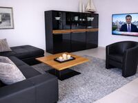 Die Unterkunft besteht aus einen Wohn-/Schlafraum mit hochwertiger Couch zum ausziehen, offene gut ausgestattete Einbauküche, Kühlschrank mit Gefrierfach, Cerankochfeld, Backofen, Geschirrspüler, Kaffeemaschine, WLAN, usw., 1 Schlafzimmer mit Doppelbett und TV, ein modernes Duschbad , große Terrasse zur Südseite mit Sitzecke und Gartenliegen, Abstellraum für Fahrräder und ein PKW-Stellplatz.
